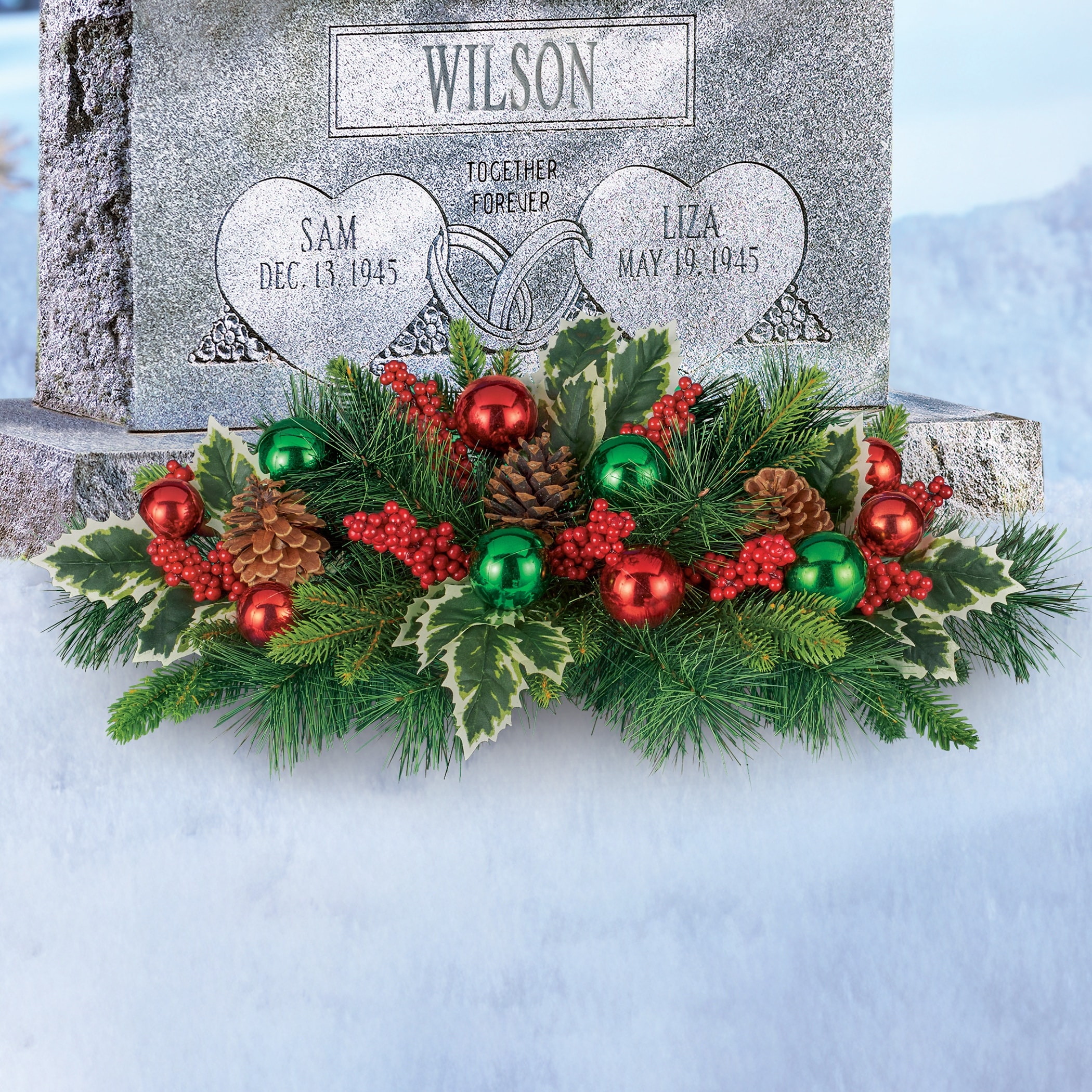 Festive Artificial Holly and Pinecones Ornament Memorial Garden Stake - 19.37 x 6.25 x 10