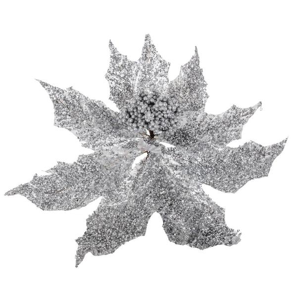 Vickerman 782958 - 18" Silver Glitter Poinsettia Stem (L250507UV)