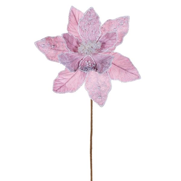 Vickerman 792254 - 17" Pink Poinsettia Velvet Pearl Flower (2 Pack) (RG253179)