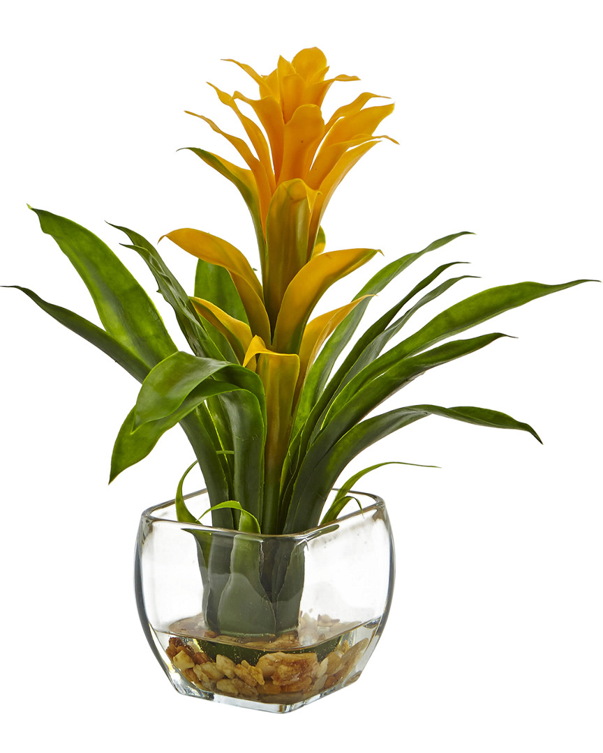 Nearly Natural Bromeliad With Glass Vase Arrangement