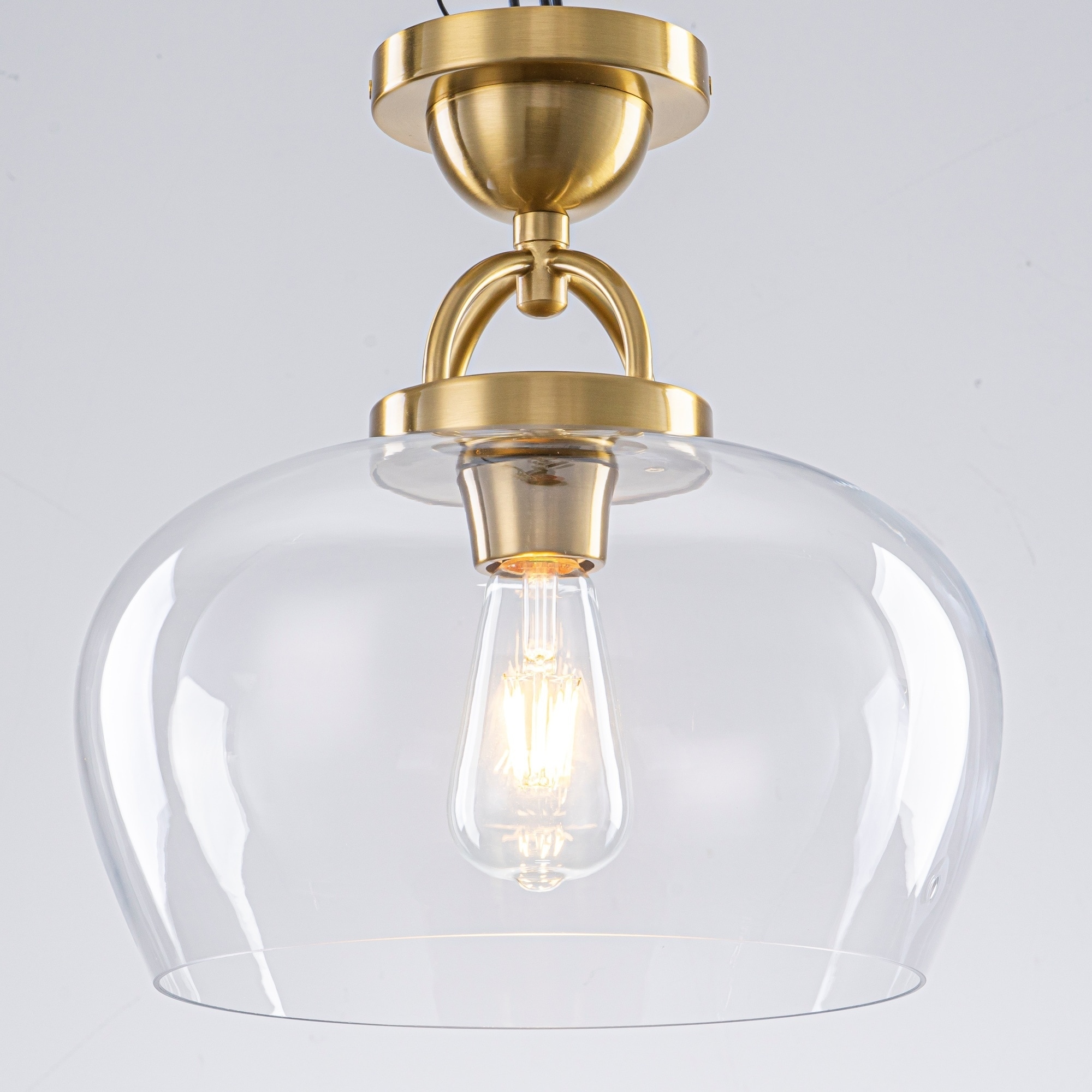 1-Light Modern Metal & Glass Flush Mount with Transparent Open Flat-Ball Shade for Bedroom - 11.8 in. W x 13 in. H