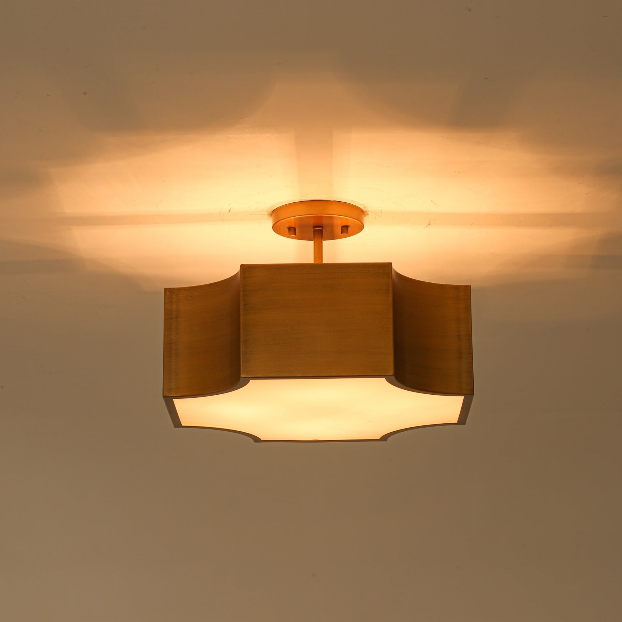 4-Light Mid-Century Modern Vintage Gold Metal Flush Mount Ceiling Light - Rectangular Metal Shade Fixture for Dining Room