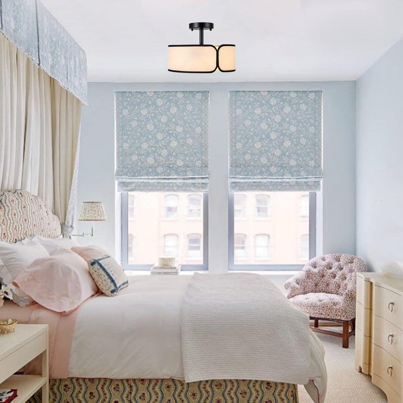 2 Pack kitchen flush black , white semi flush led light metal and fabric ceiling light - N/A