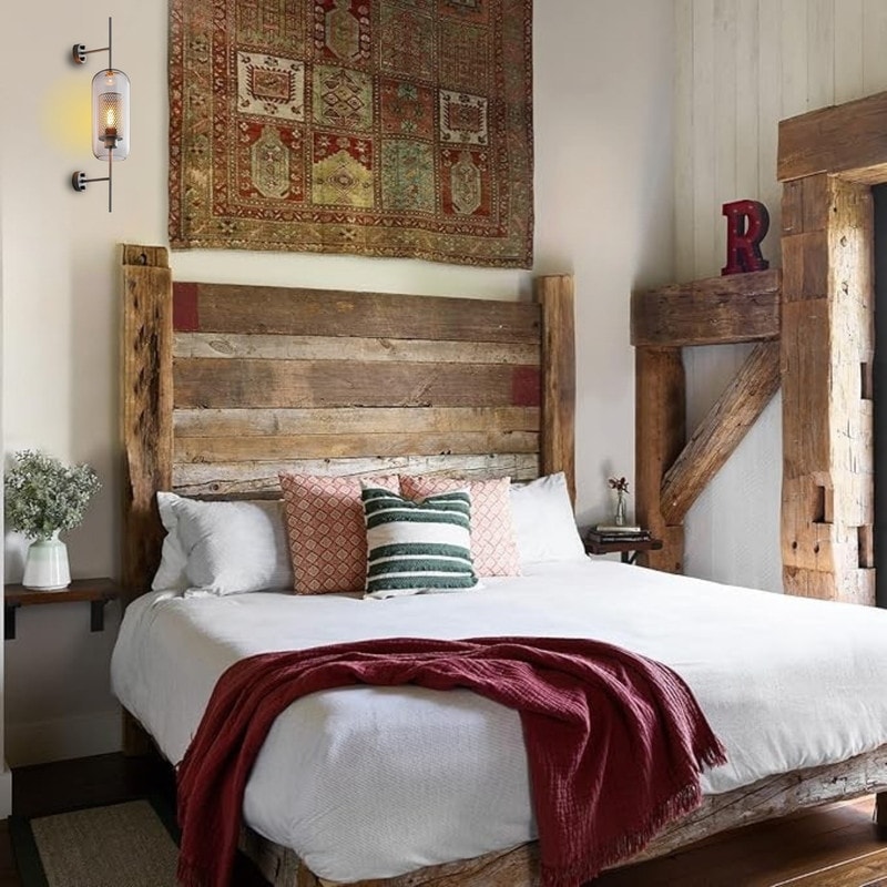 2 Pack wall sconces black wall lighting bamboo, metal wireless wall sconce
