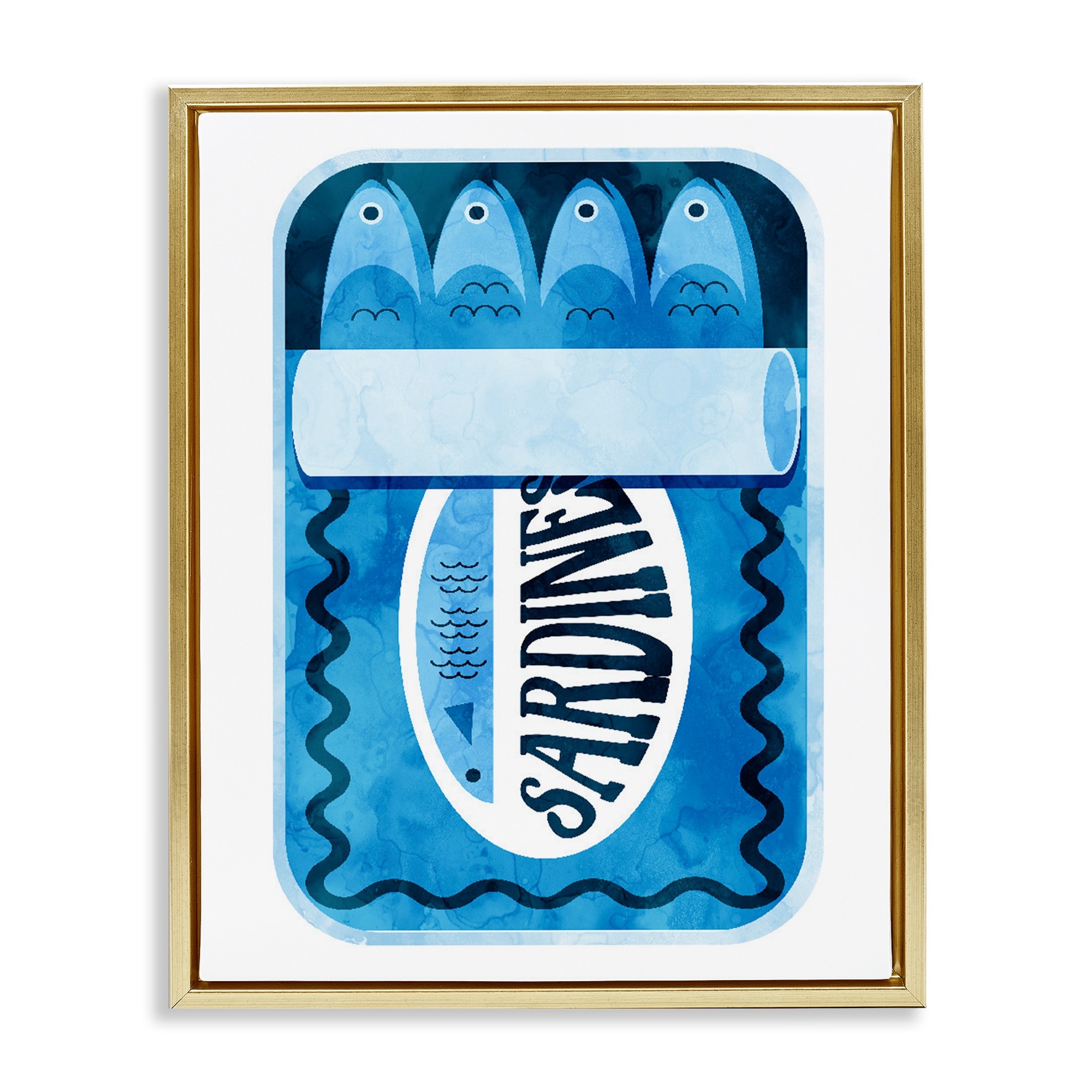 Stupell Retro Blue Sardine Tin Framed Floater Canvas Wall Art Design By Daphne Polselli