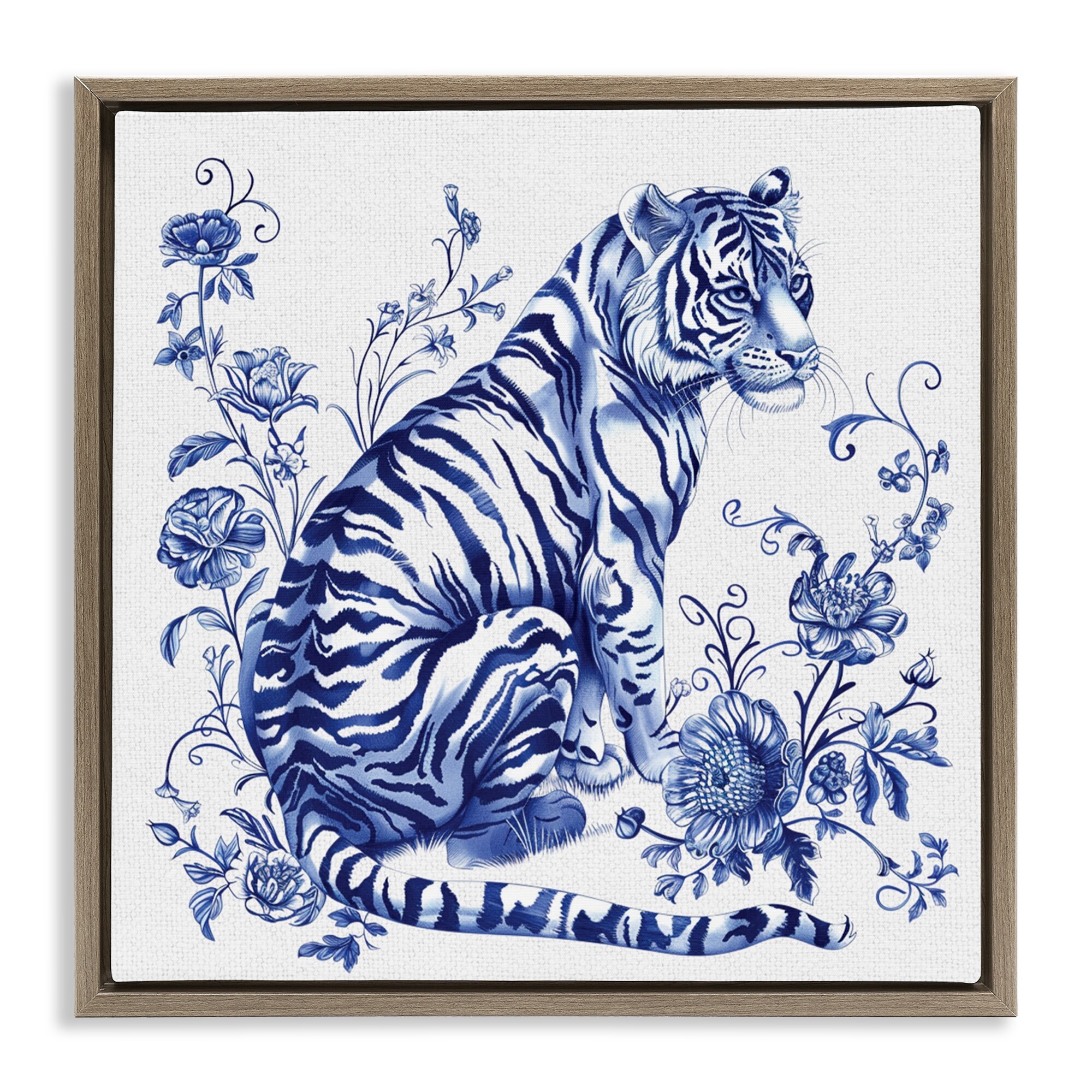 Stupell Traditional Ornate Floral Tiger Framed Floater Canvas Wall Art Design By Lettered and Lined