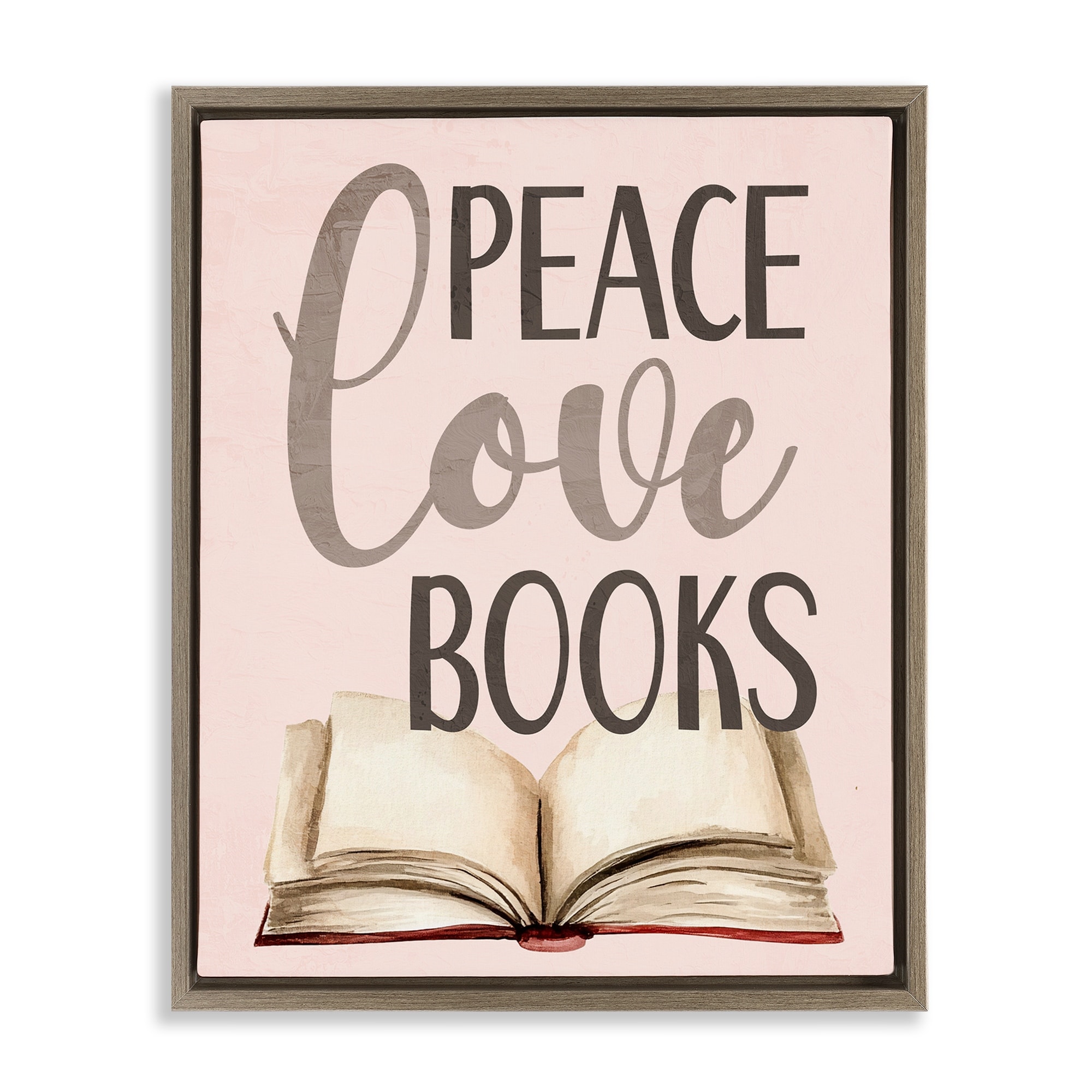 Stupell Peace Love Books Framed Floater Canvas Wall Art Design By Kim Allen