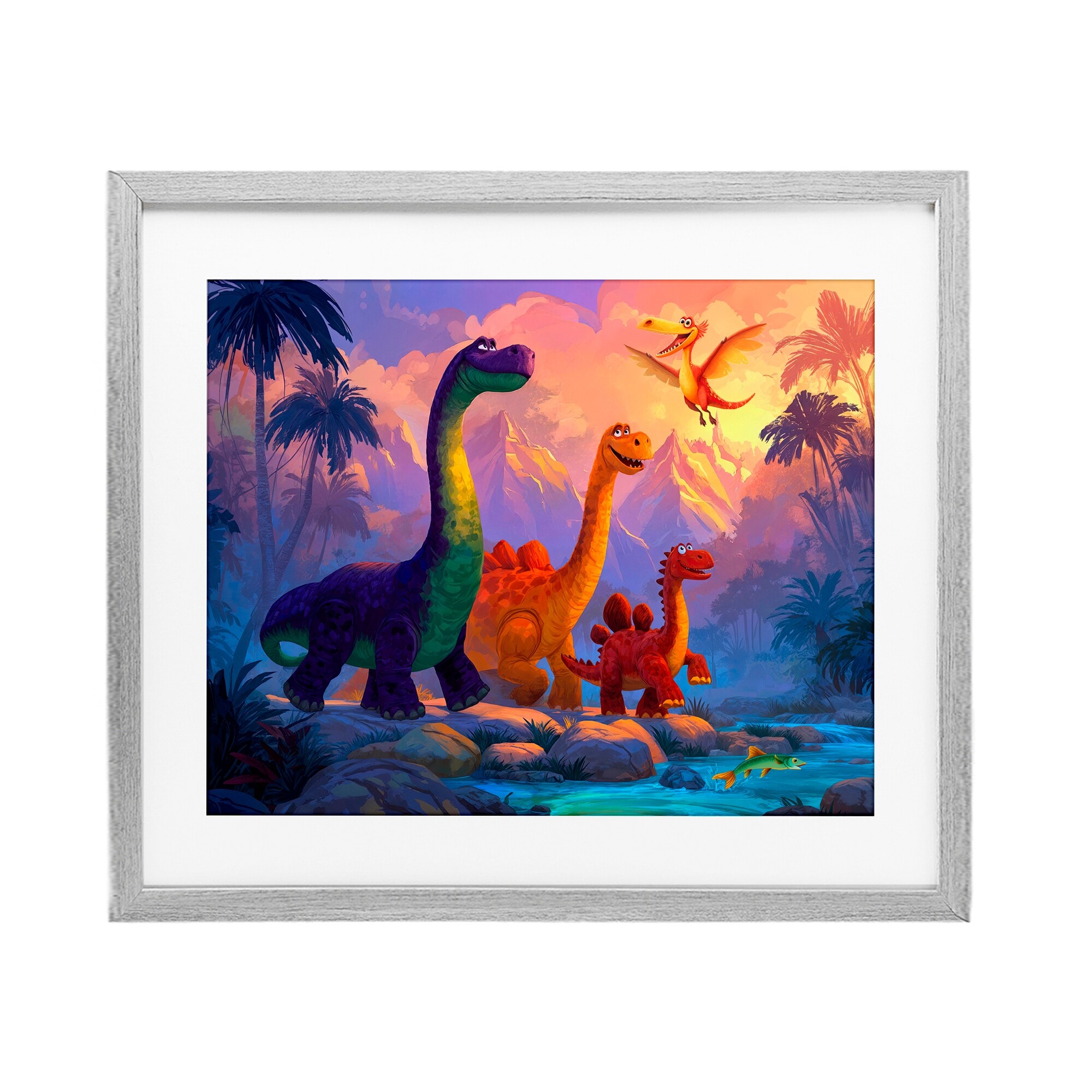 Stupell Dinosaur Friends In The Jungle Under Glass Framed Design By Wumples