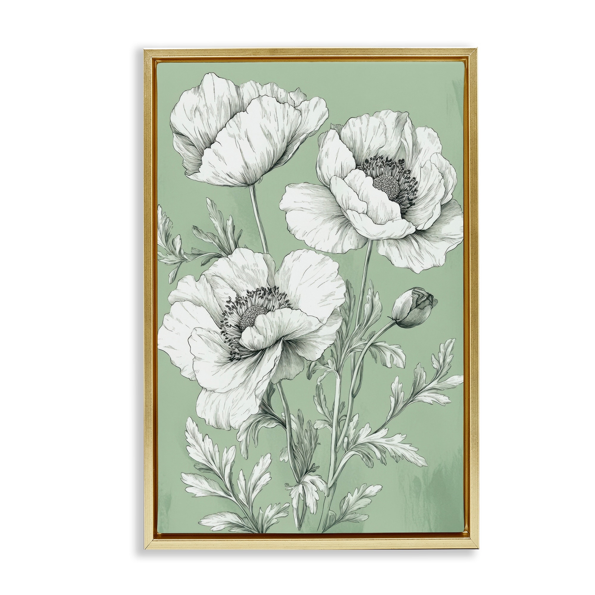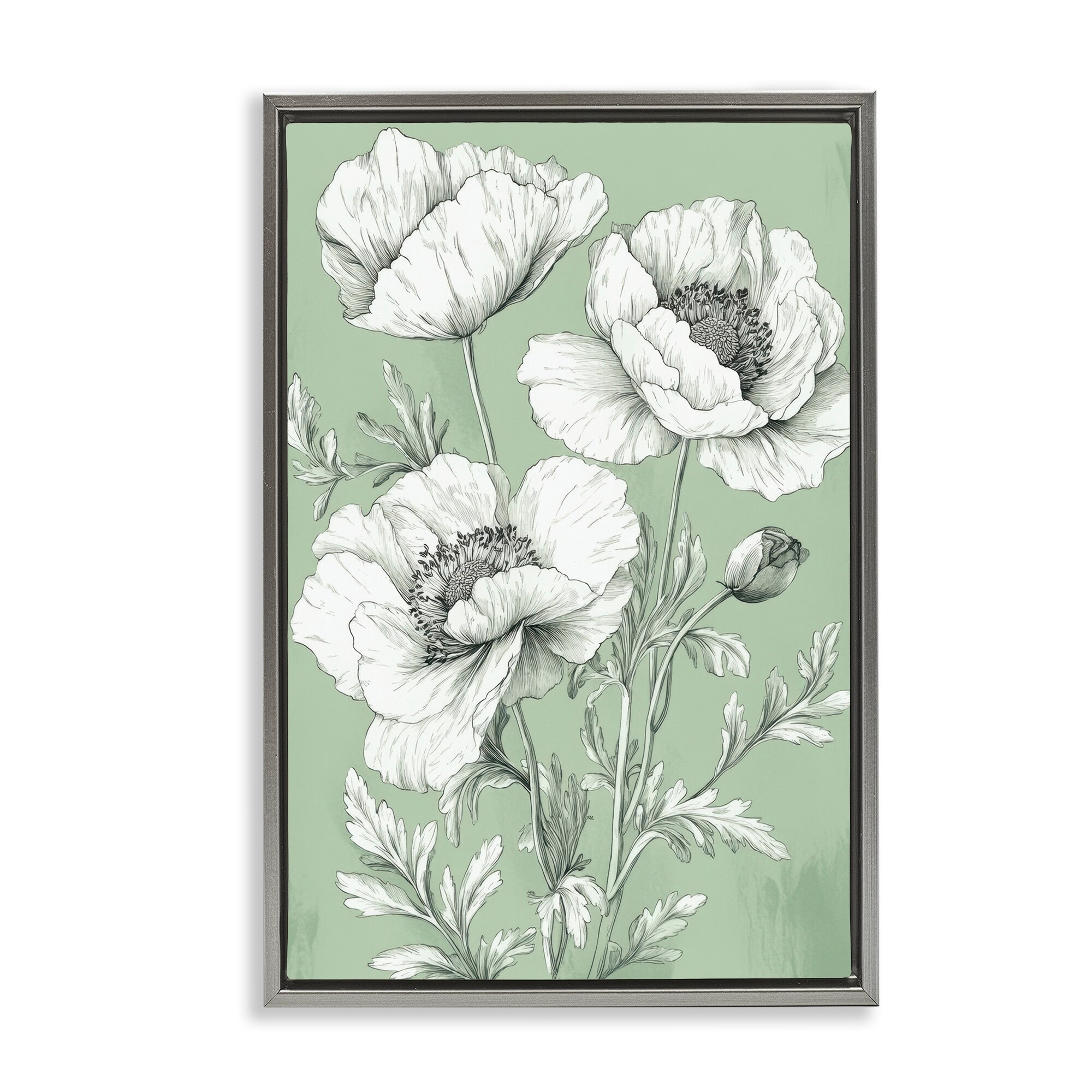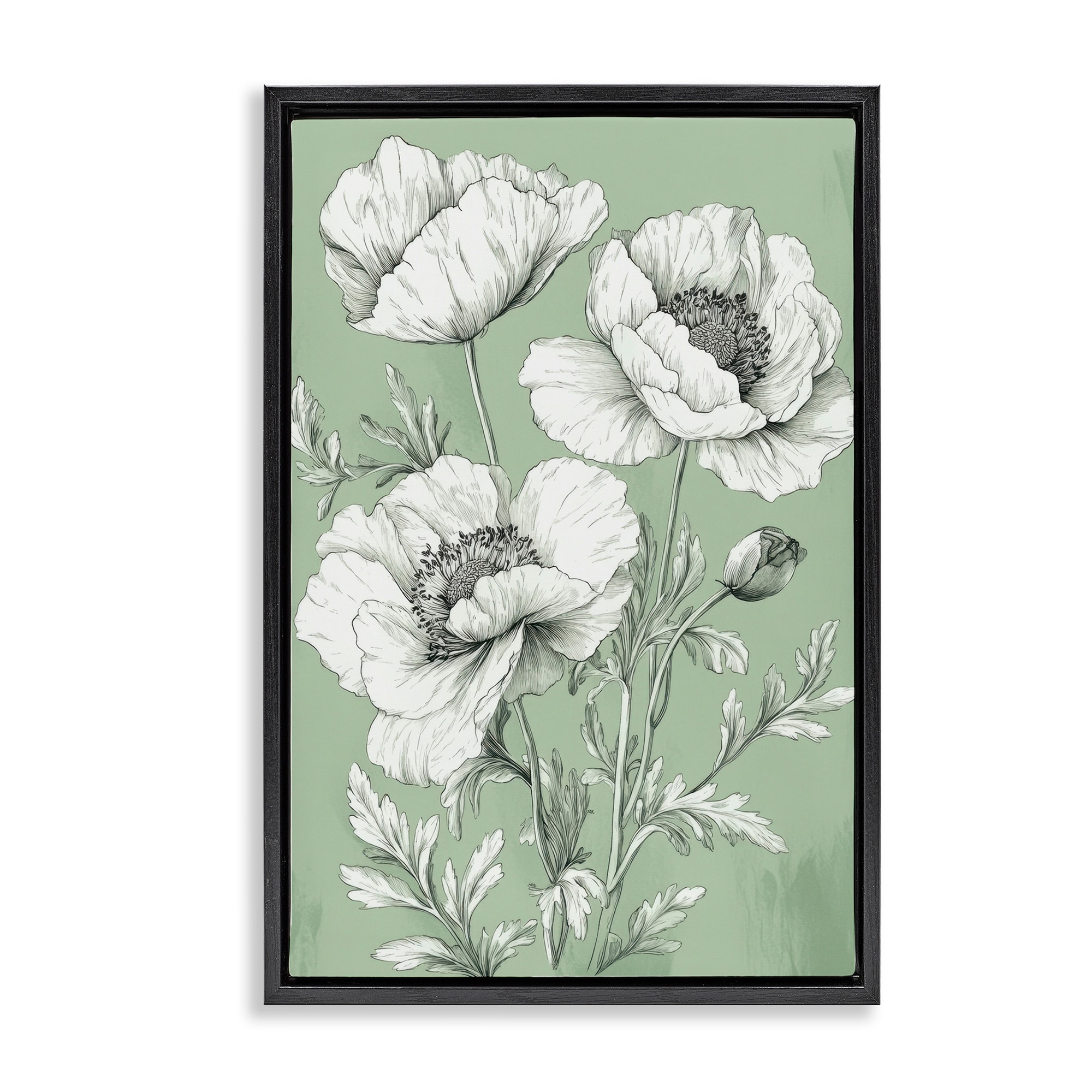 Stupell Classic Green Poppy Floral Framed Floater Canvas Wall Art Design By Petal Prints Design