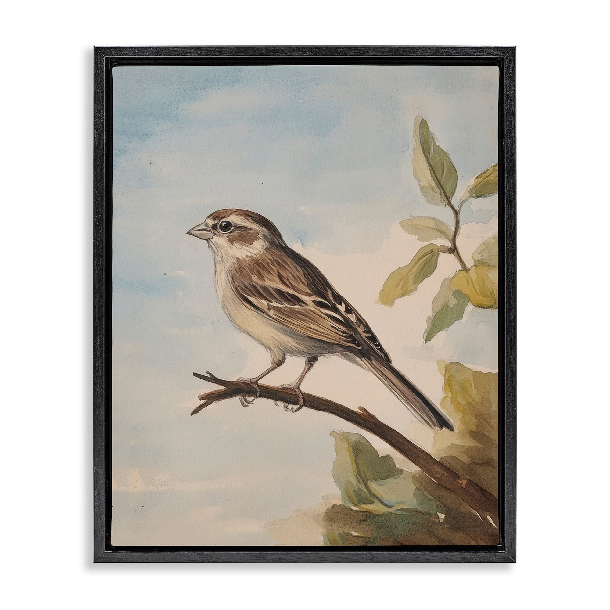 Stupell Brown Bird Perched on Branch Framed Floater Canvas Wall Art Design By Petal Prints Design
