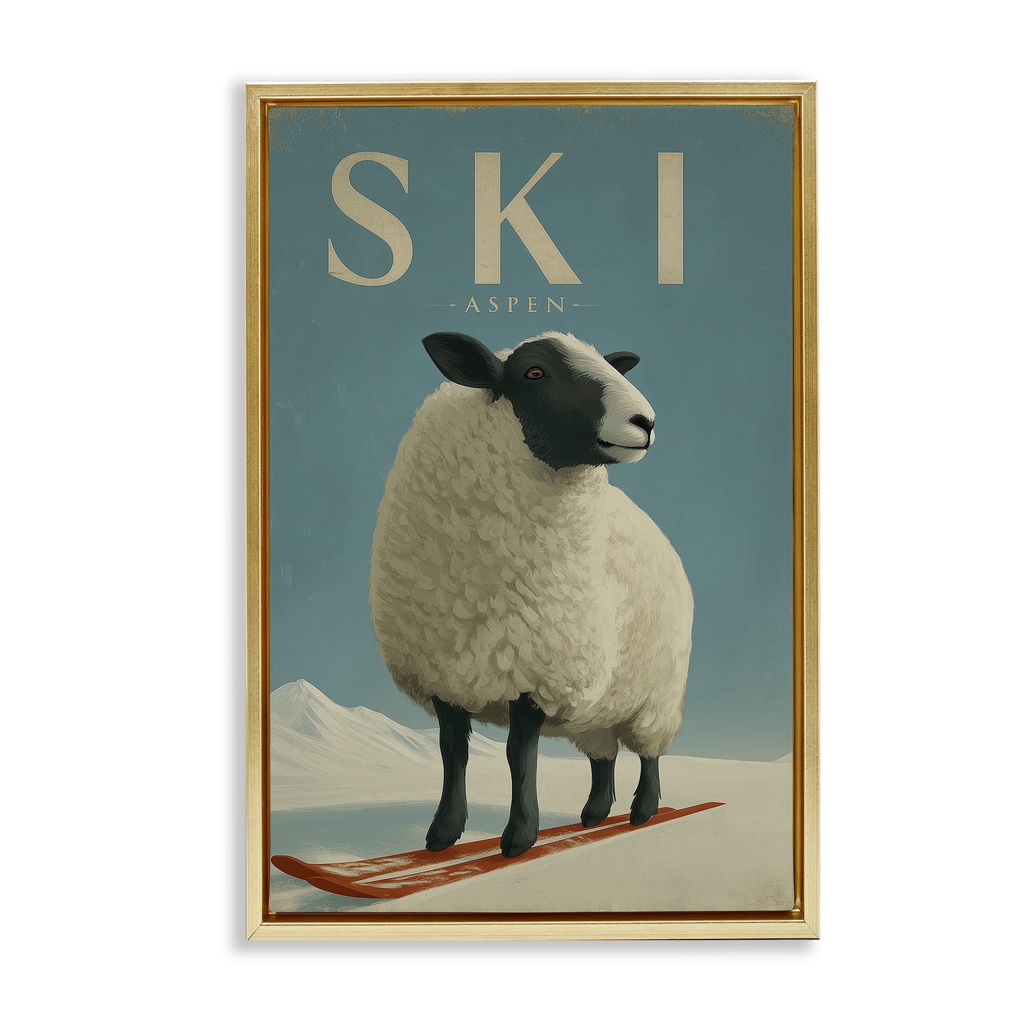 Stupell Ski Aspen Sheep Framed Floater Canvas Wall Art Design By Annabelle Hall