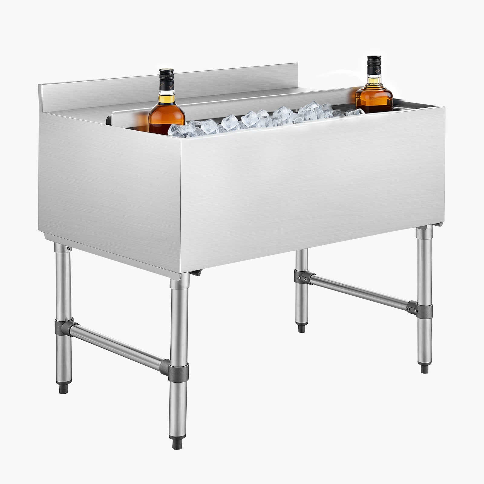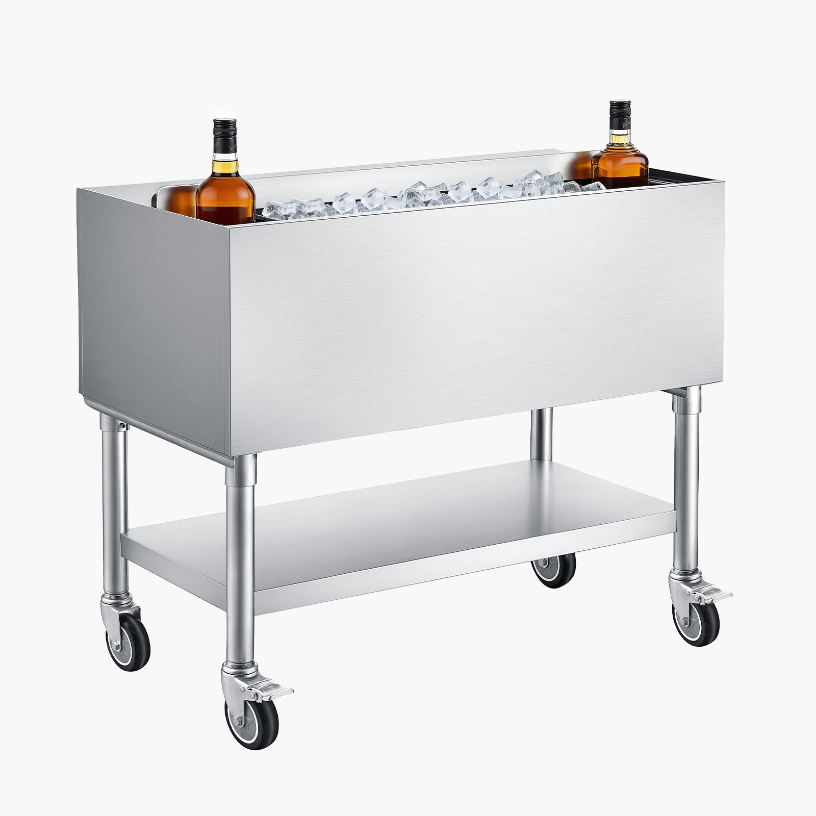 VEVOR Commercial Ice Bin,Stainless Steel Ice Chest with Sliding Lid and Bottle Holders, Cooler Cart Cocktail Unit