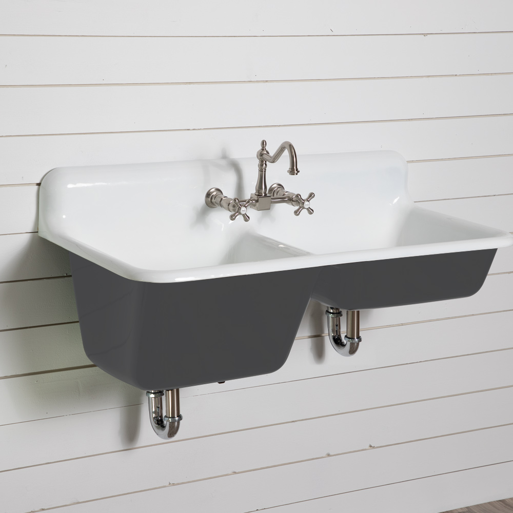 Randolph Morris 47 Inch Cast Iron High Back Double Bowl Farmhouse Kitchen Sink CASTSINK47-DG