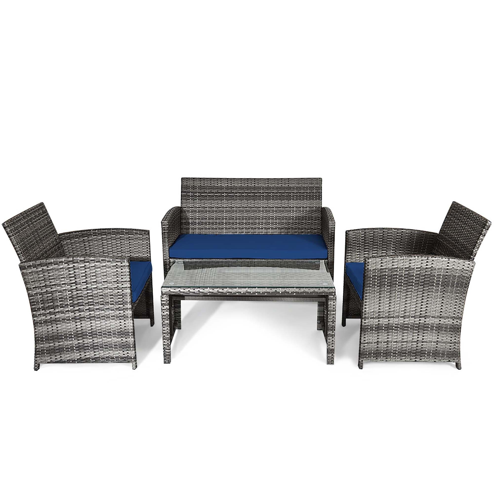4 PCS Patio Furniture Set Modern Rattan Sofa Couch w/ Table Set