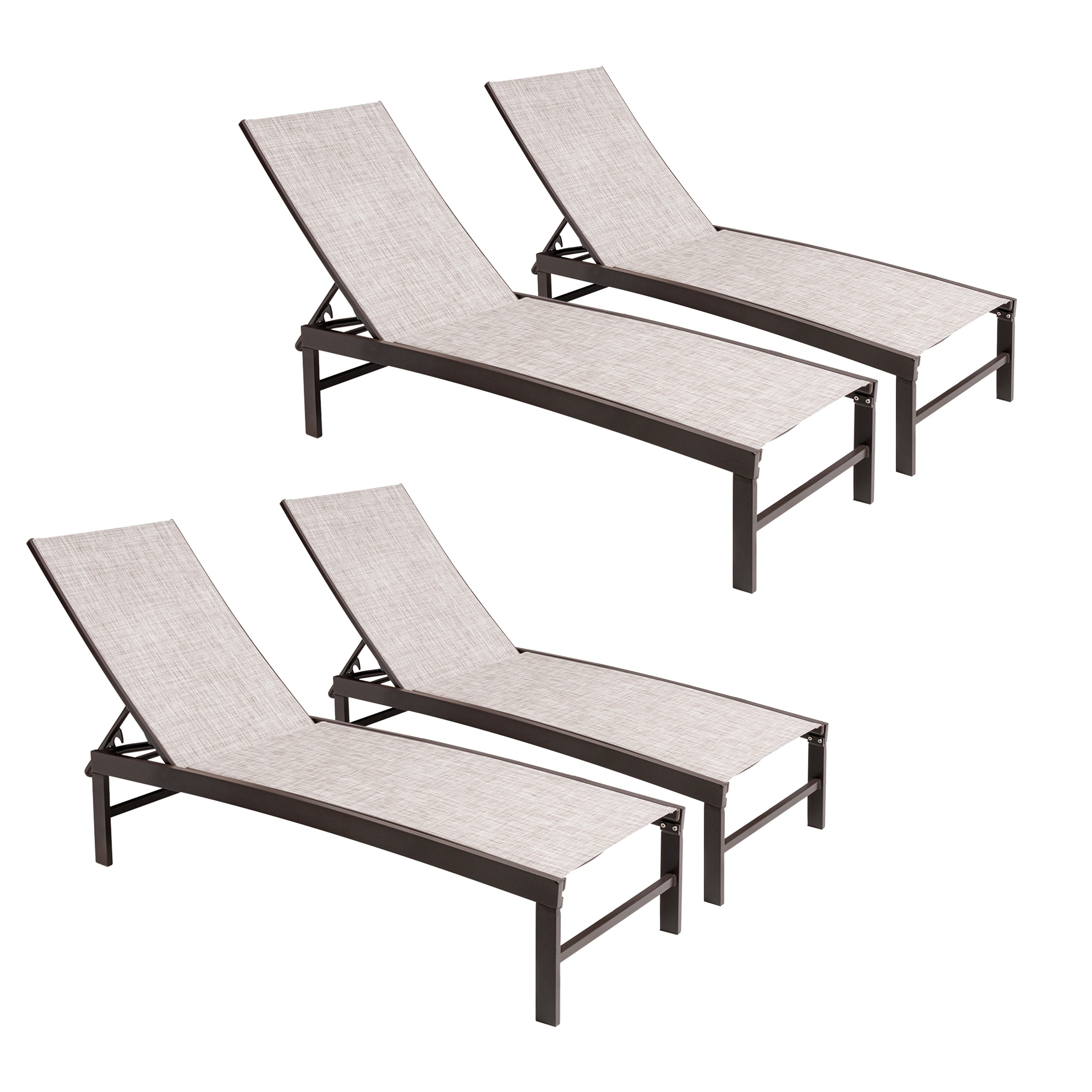 VredHom Outdoor Patio Adjustable Aluminum Chaise Lounges (Set of 4) - 76.38" L x 23.62" W x 13" H