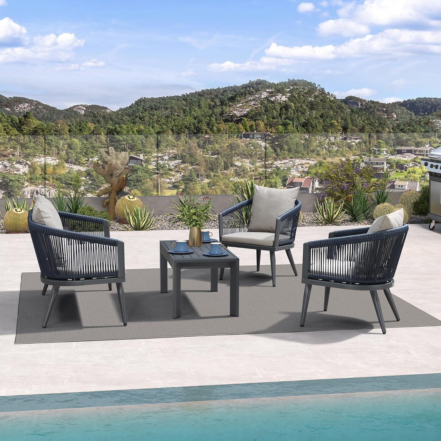 PURPLE LEAF 4-Piece Wicker Outdoor Patio Furniture Set Aluminum Rattan Sofa