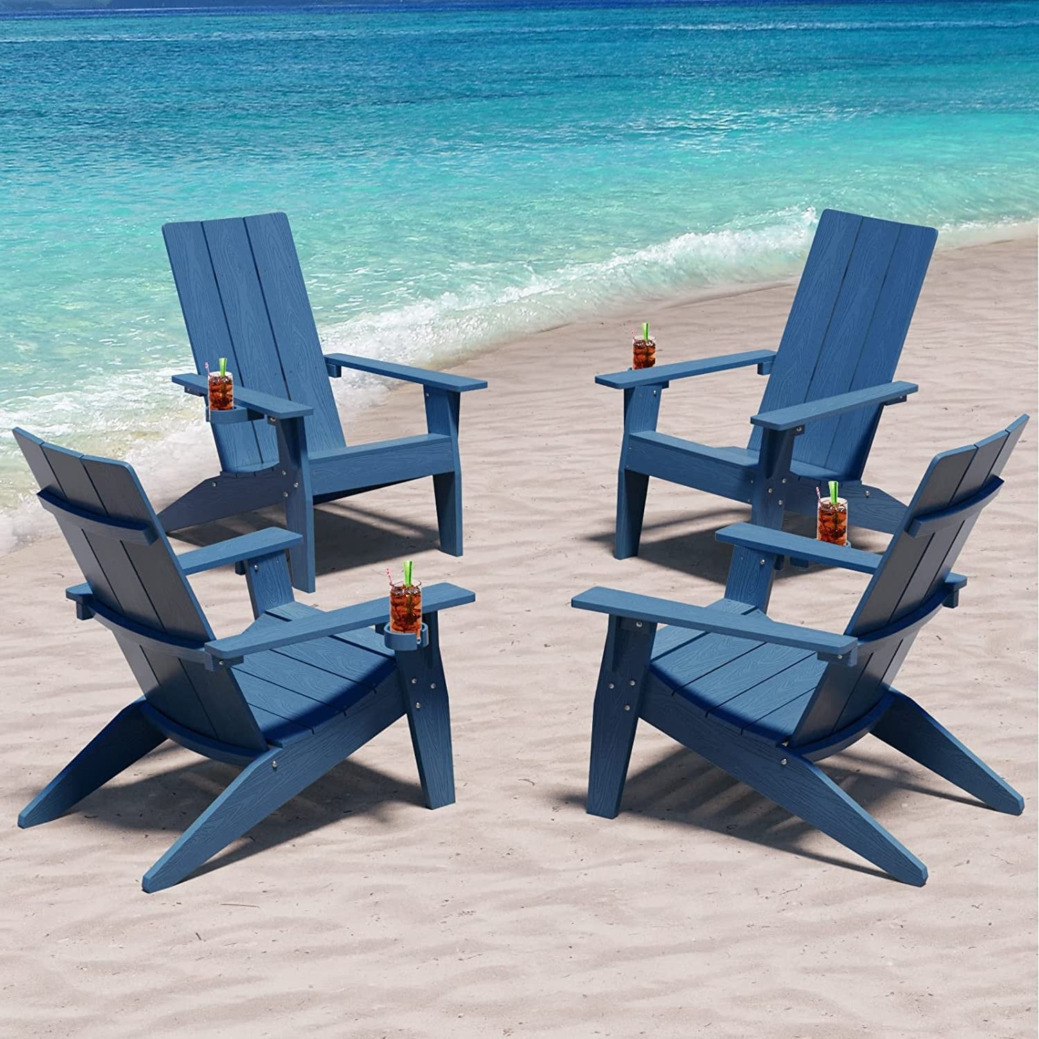 WINSOON All-Weather HIPS Outdoor Adirondack Chairs with Cup Holder (Set of 4)
