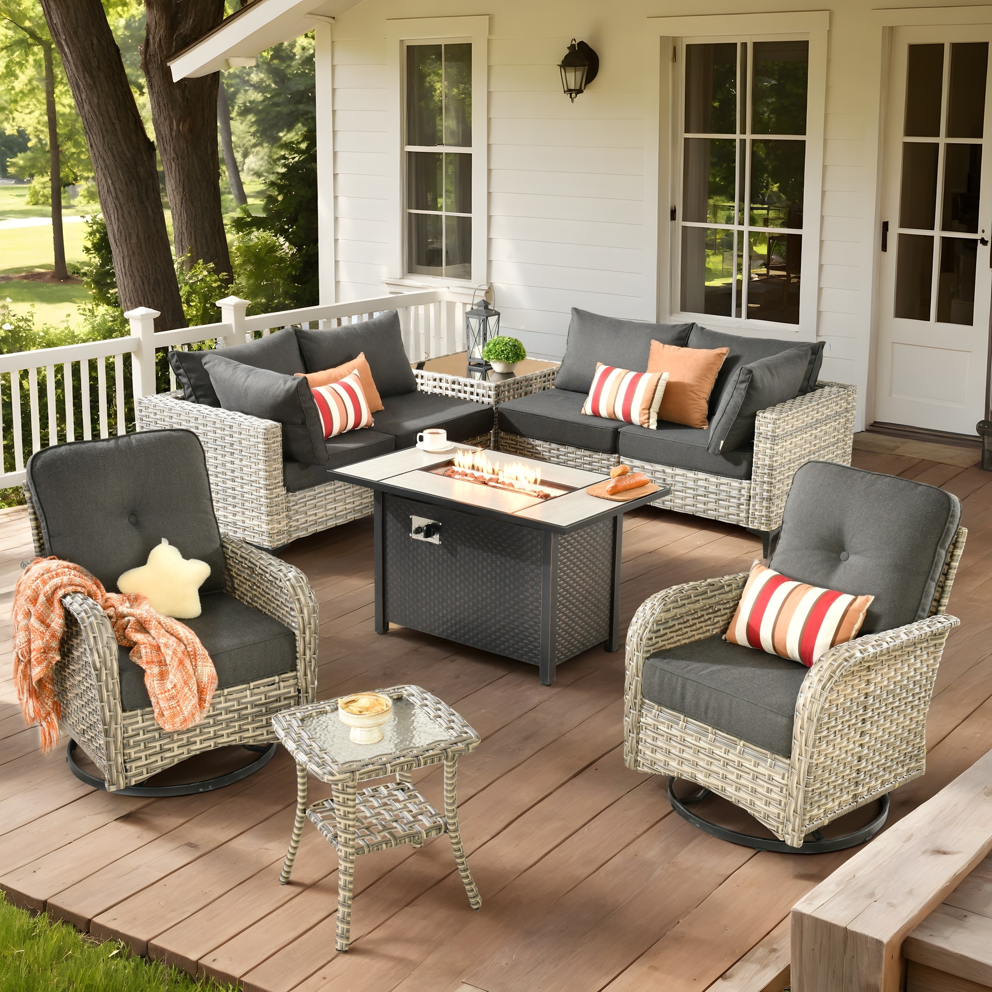 XIZZI 8-piece Outdoor Wicker Furniture Set with Fire Pit Table