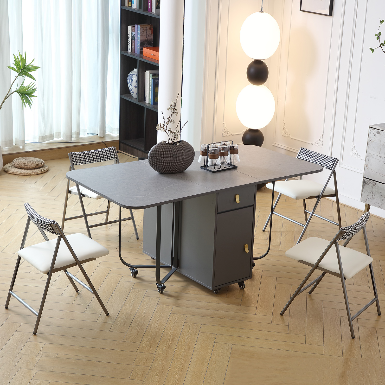 Multifunctional Movable Fashion Folding Dining Table, Rectangle Dining Table With Folding Chairs, Space Saving Furniture table Without Chairs