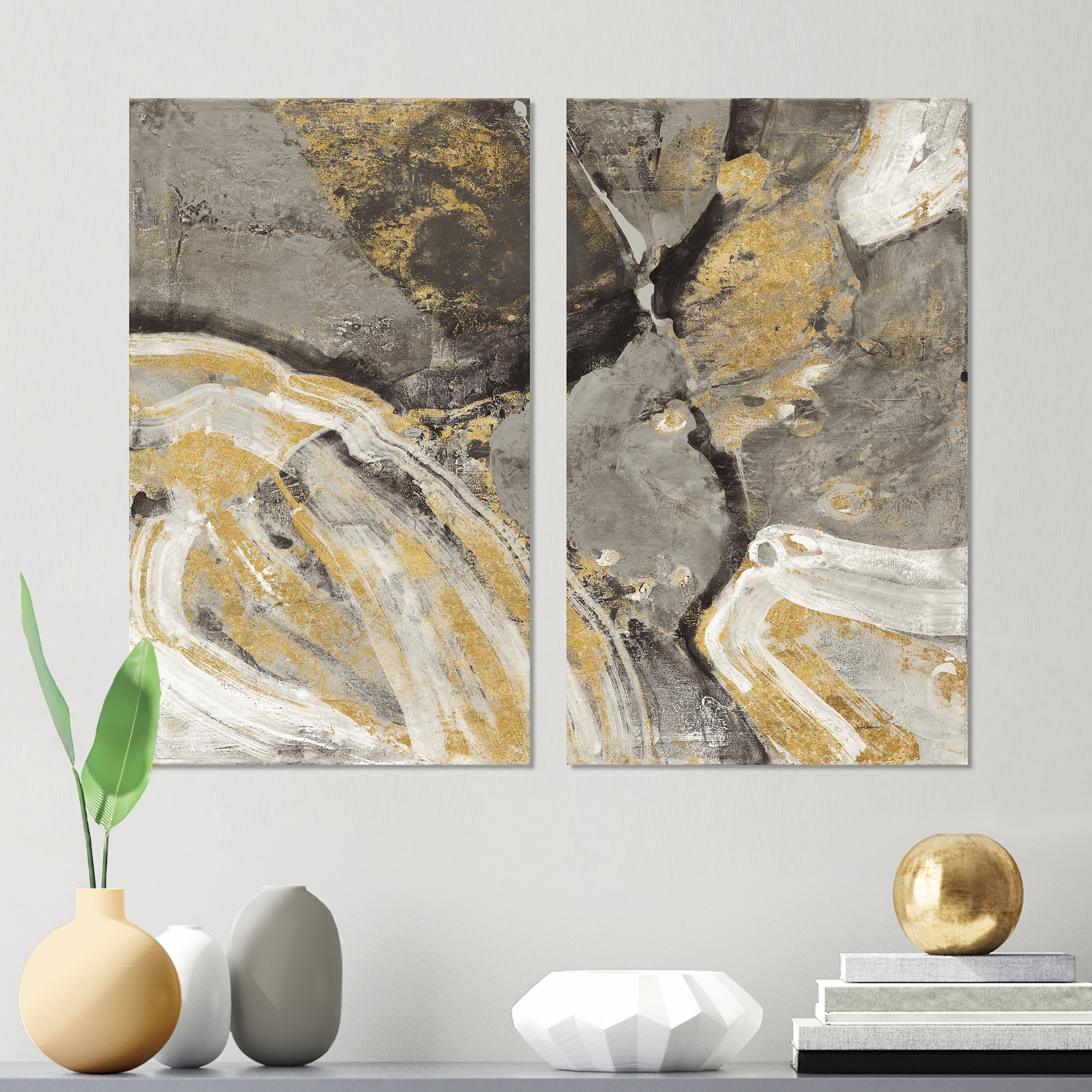 Designart "Glam Phoenix Neutral" Modern Glam Canvas Wall Art Print 2 Piece Set