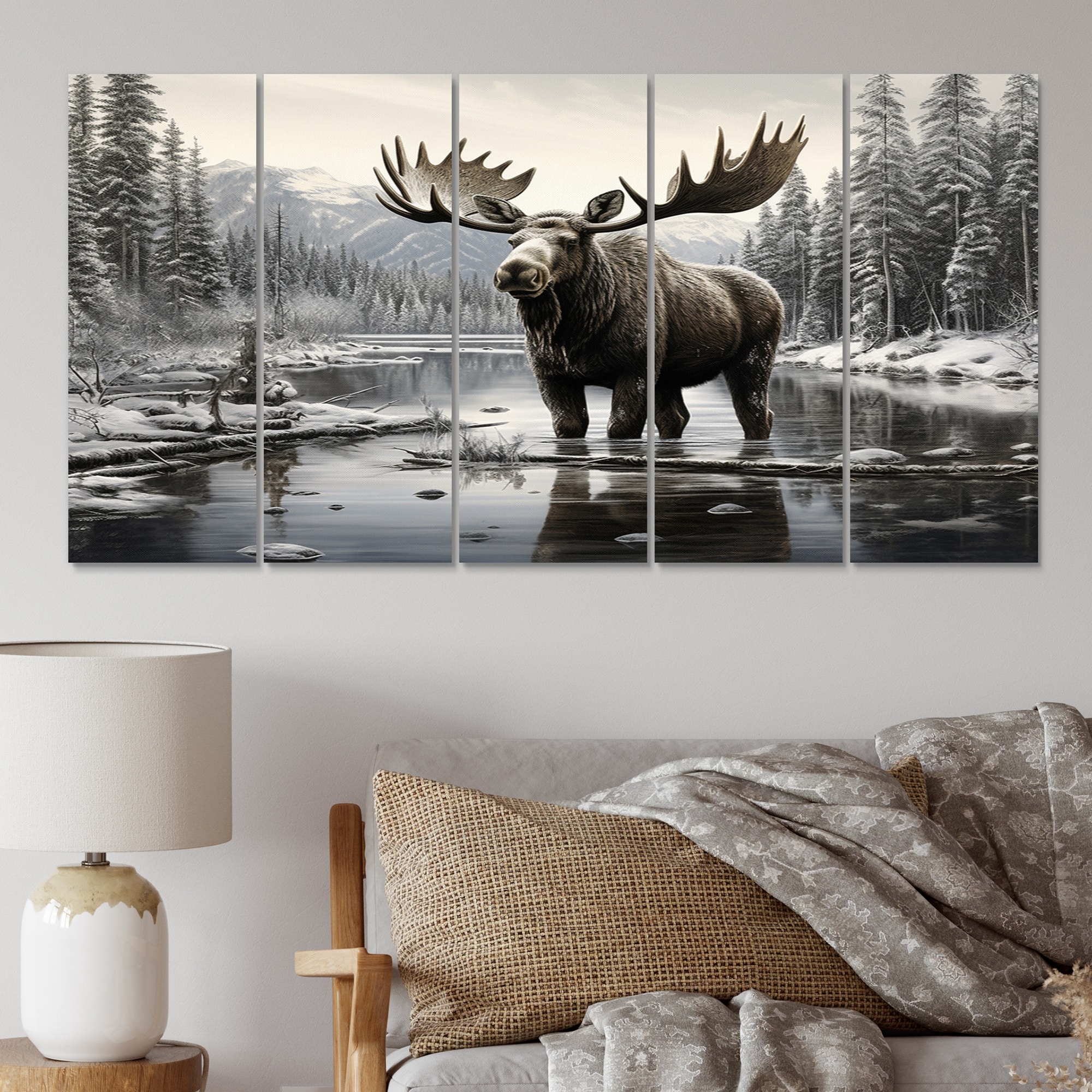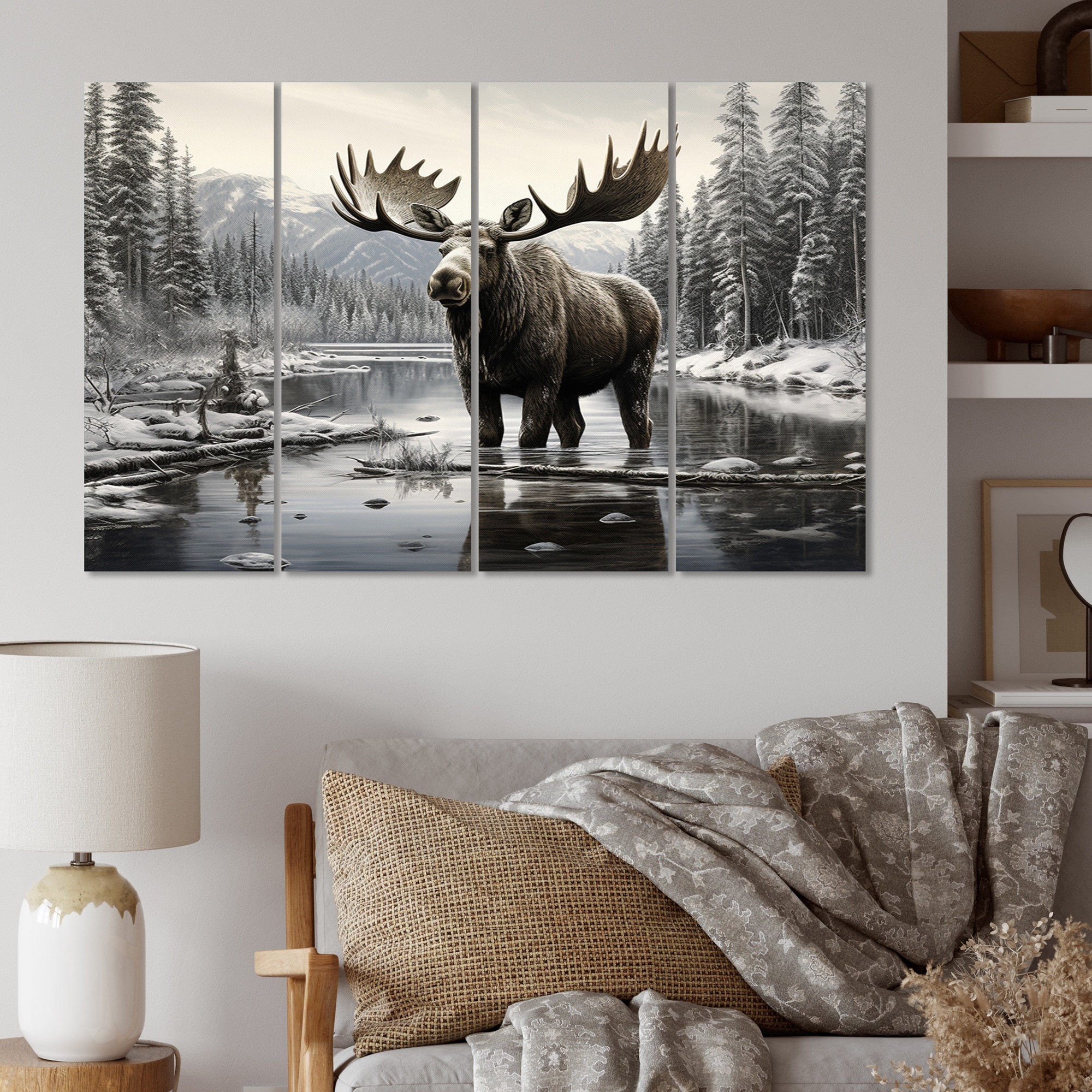 Designart "Brown White Moose Winter Majesty" Animals Multipanel Wall Decor set