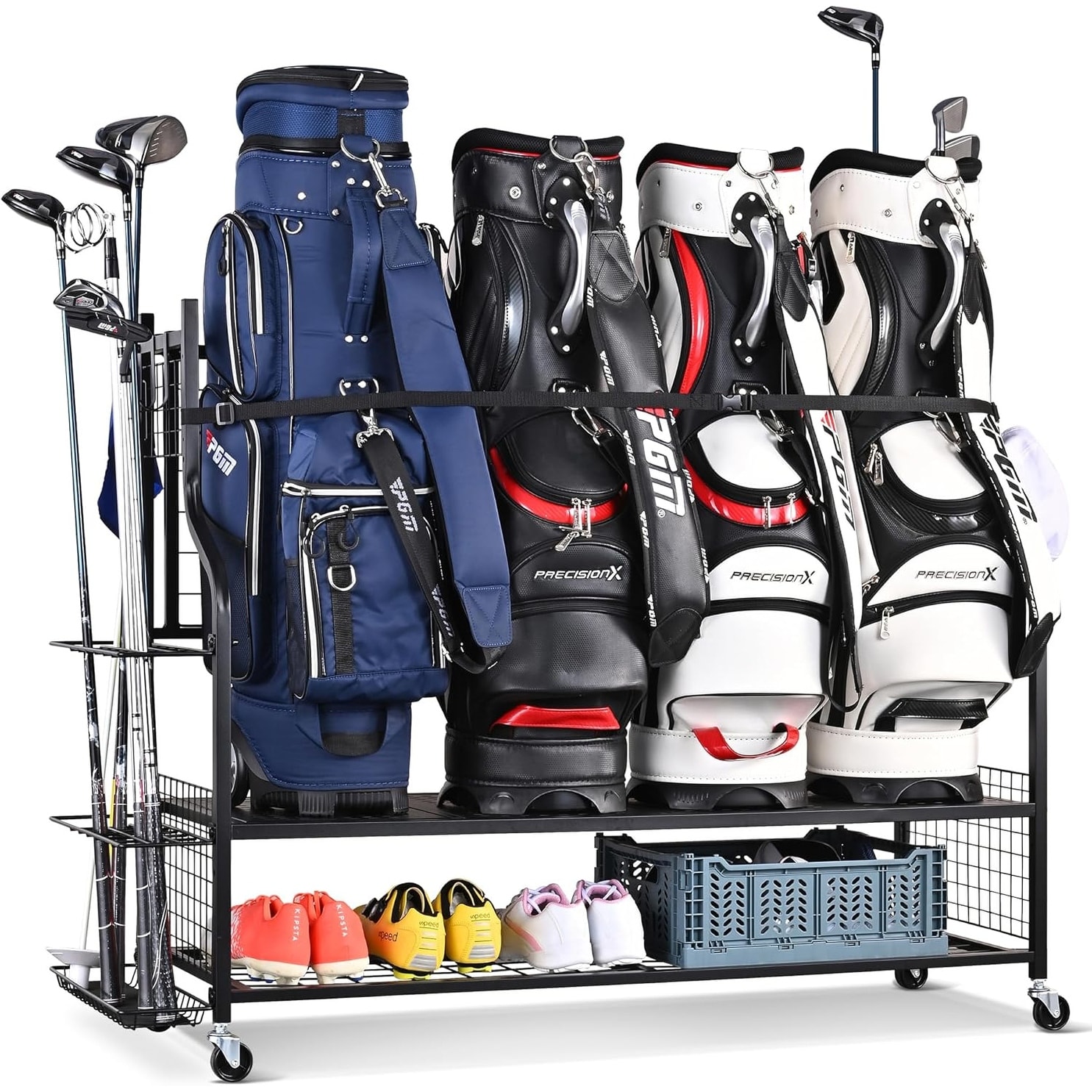 4 Golf Bag Storage Rack Rolling Garage Stand for Clubs and Accessories