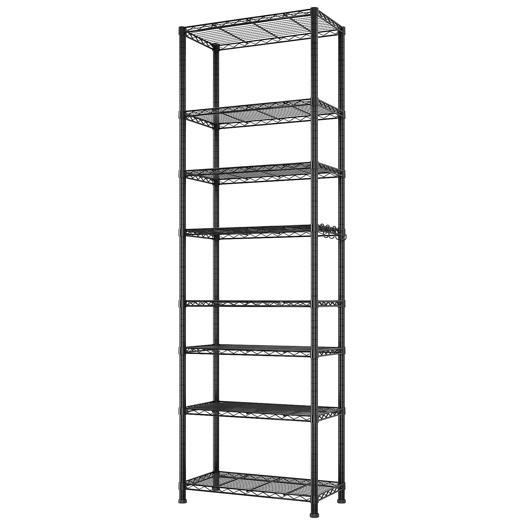 5-Tier Black Metal Storage Shelving Unit with Adjustable Horizontal Shelves for Garage or Kitchen - 35.40”L x 15.70”W x 71.20”H