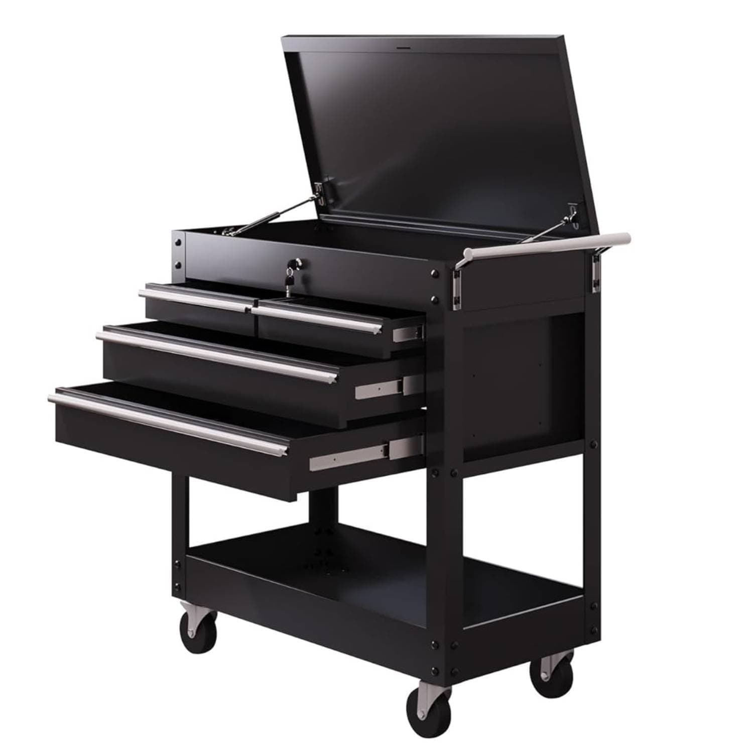 4-Tier Rolling Storage Tool Cart with Locking Drawers - N/A