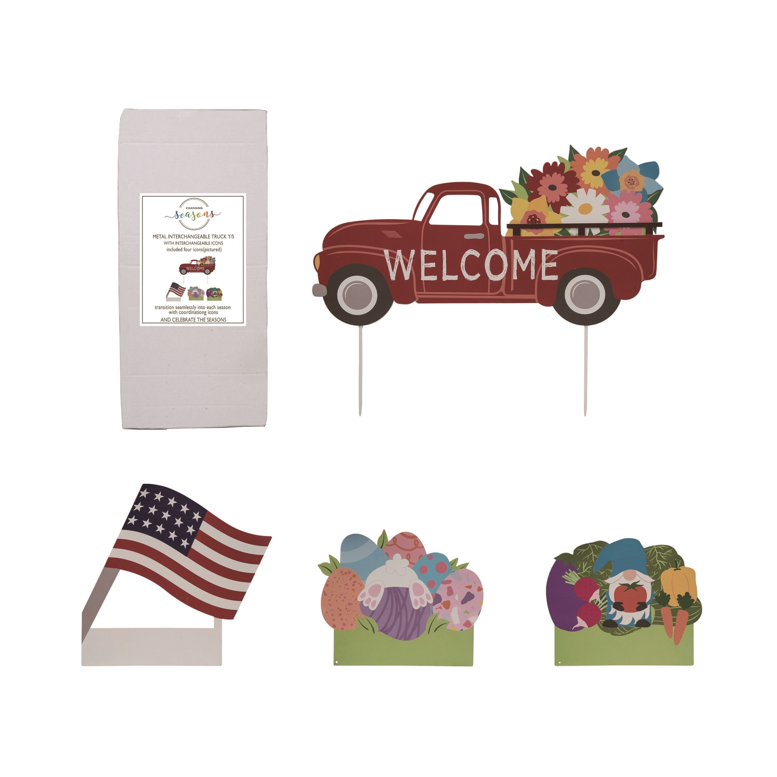 Transpac Metal 22.75" Multicolor Spring Interchangeable Truck Yardstake Set of 5