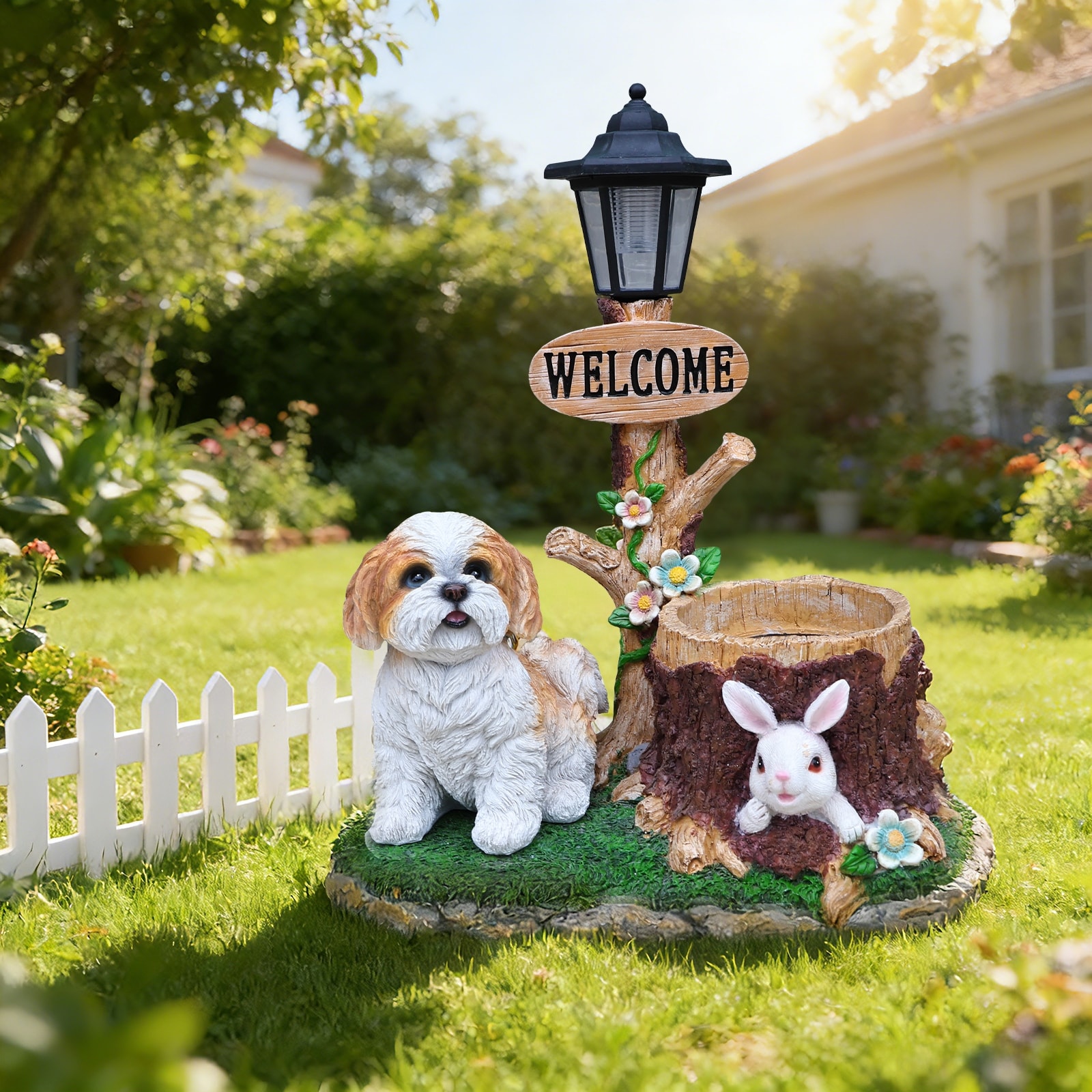 GDFStudio - Sitting Dog Solar Lantern Planter Statue Resin Outdoor Garden Decor for Patio