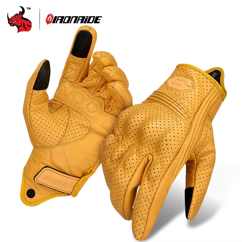 Vintage Leather Motorcycle Gloves Breathable Summer Riding Gloves With Anti Slip Grip For Men & Women su06 Yellow m