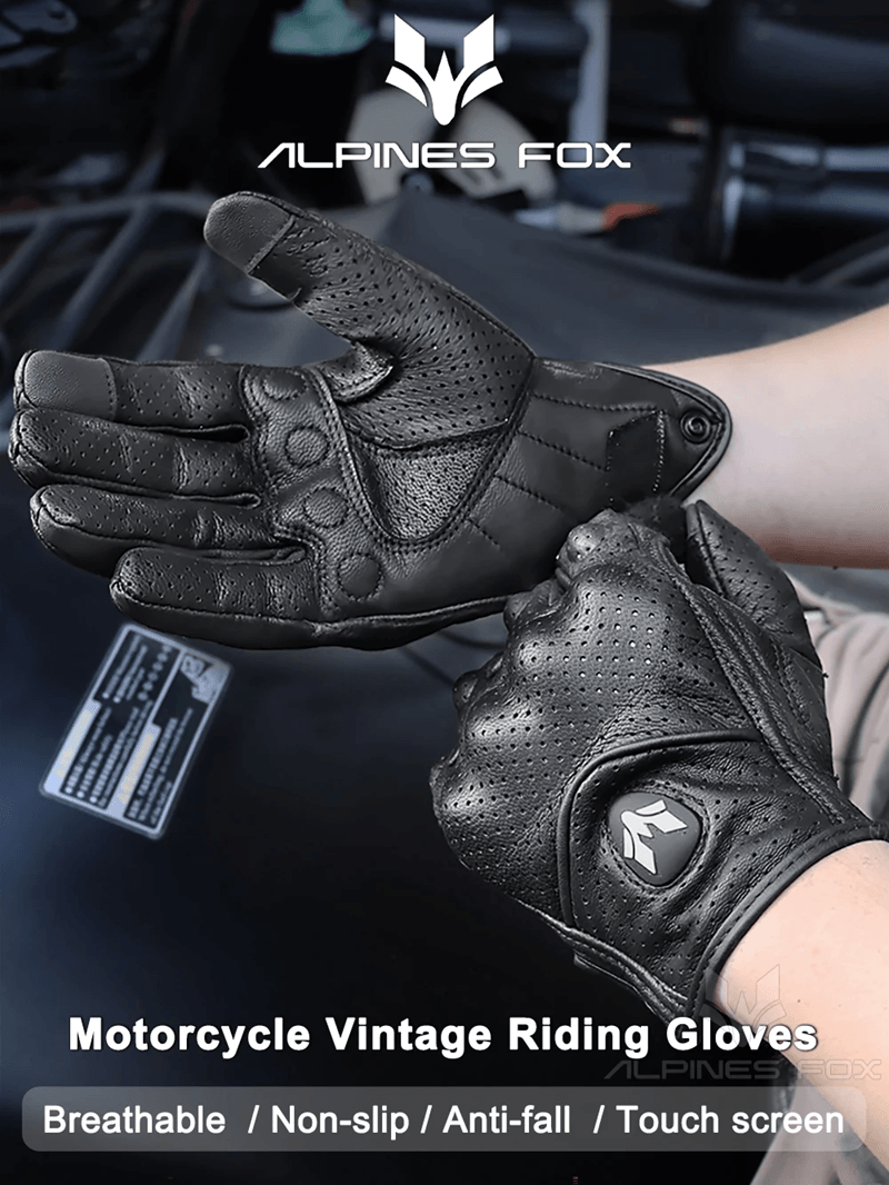 Vintage Leather Motorcycle Gloves Men Touchscreen Retro Style m black Hole