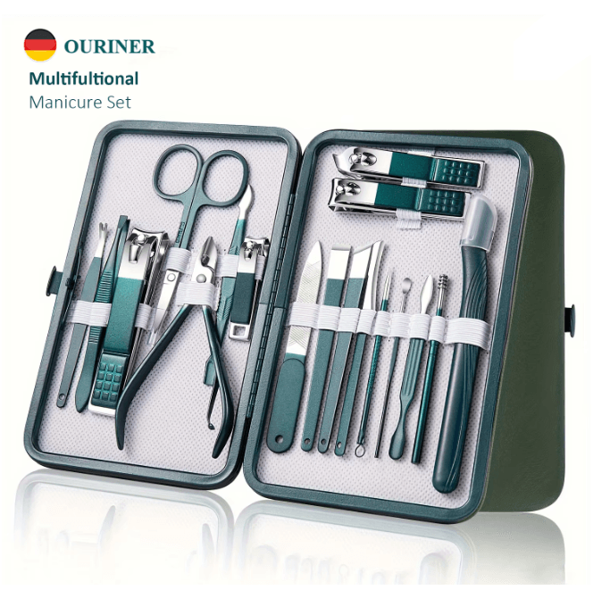 Stainless Steel Gradient Manicure And Pedicure Kit With Nail Scissors And Travel Case 18 Pcs Set