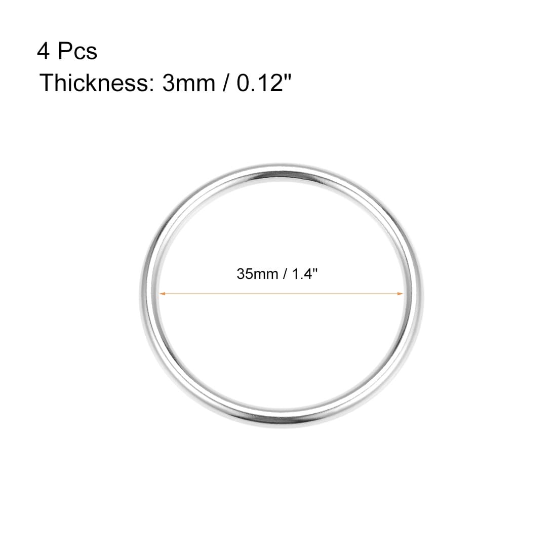 4 Pcs O Ring Buckle 1.4"(35mm) O-Rings Silver Tone for Hardware Bags Craft DIY - 35mm