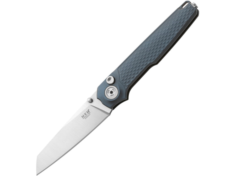 MKM Miura Button Lock Folding Knife 4in Stonewash Fnish CPM MagnaCut Stainless Sheepsfoot Blade Gray Textured Aluminum Handle. MK MI-AGY