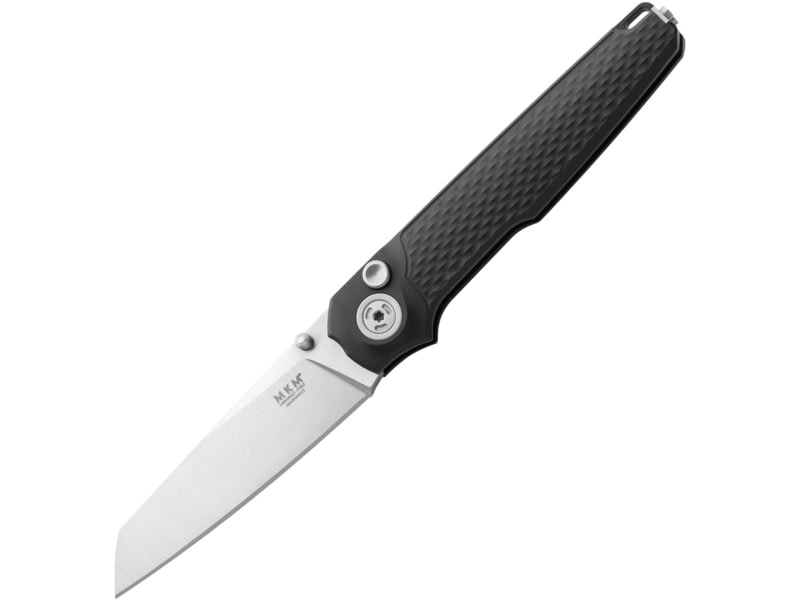 MKM Miura Button Lock Folding Knife 4in Stonewash Fnish CPM MagnaCut Stainless Sheepsfoot Blade Black Textured Aluminum Handle. MK MI-ABK