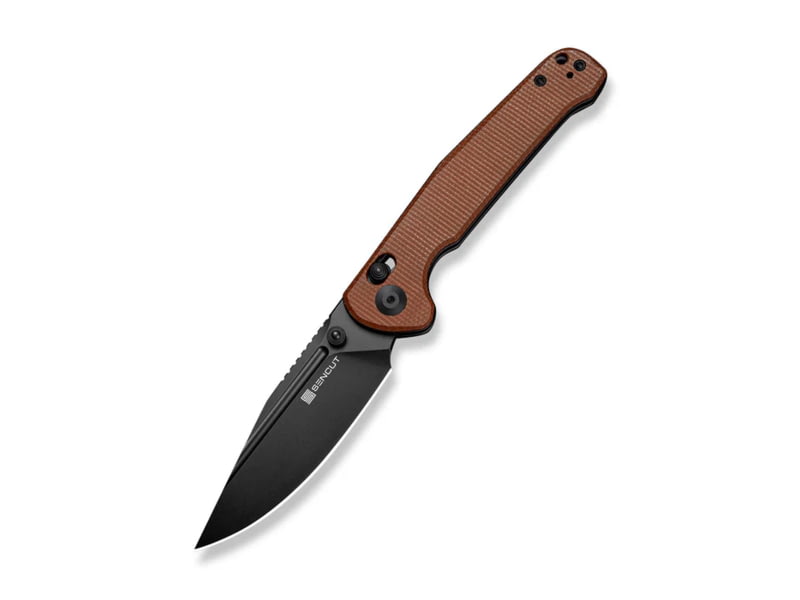 SENCUT Glenspar Thumb Stud & Crossbar Lock Knife Brown Canvas Micarta Handle 3.45inch Black 9cr18mov Blade - S25046-3