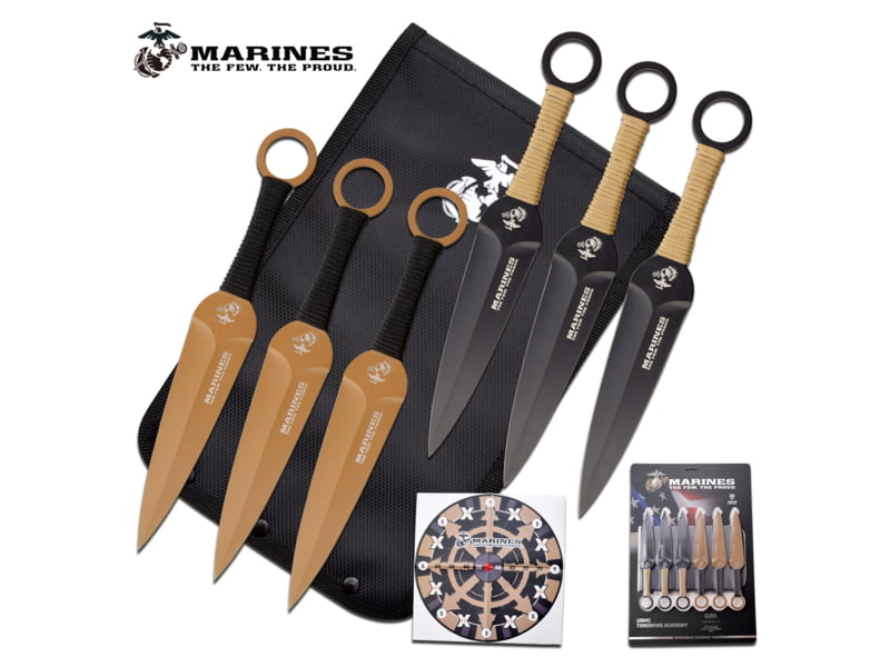 USMC 6 Throwing Knife Set 5.5 in 3Cr13 Stainless Steel Stainless Steel Black/Brown M-T001-6CS