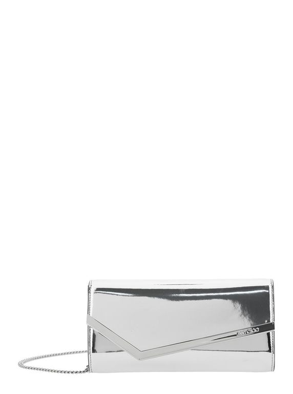 'Emmie' Metallic Envelope Clutch With Logo Lettering On The Front And Chain-Link Shoulder Strap - White - Jimmy Choo Clutches