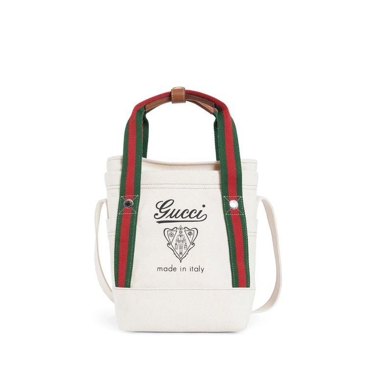 Medium Printed Canvas Bag With Web - White - Gucci Totes
