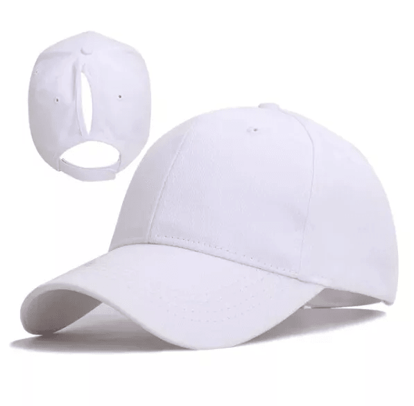 Adjustable Solid Color Ponytail Baseball Cap, Cotton Polo Style Casual Hats white