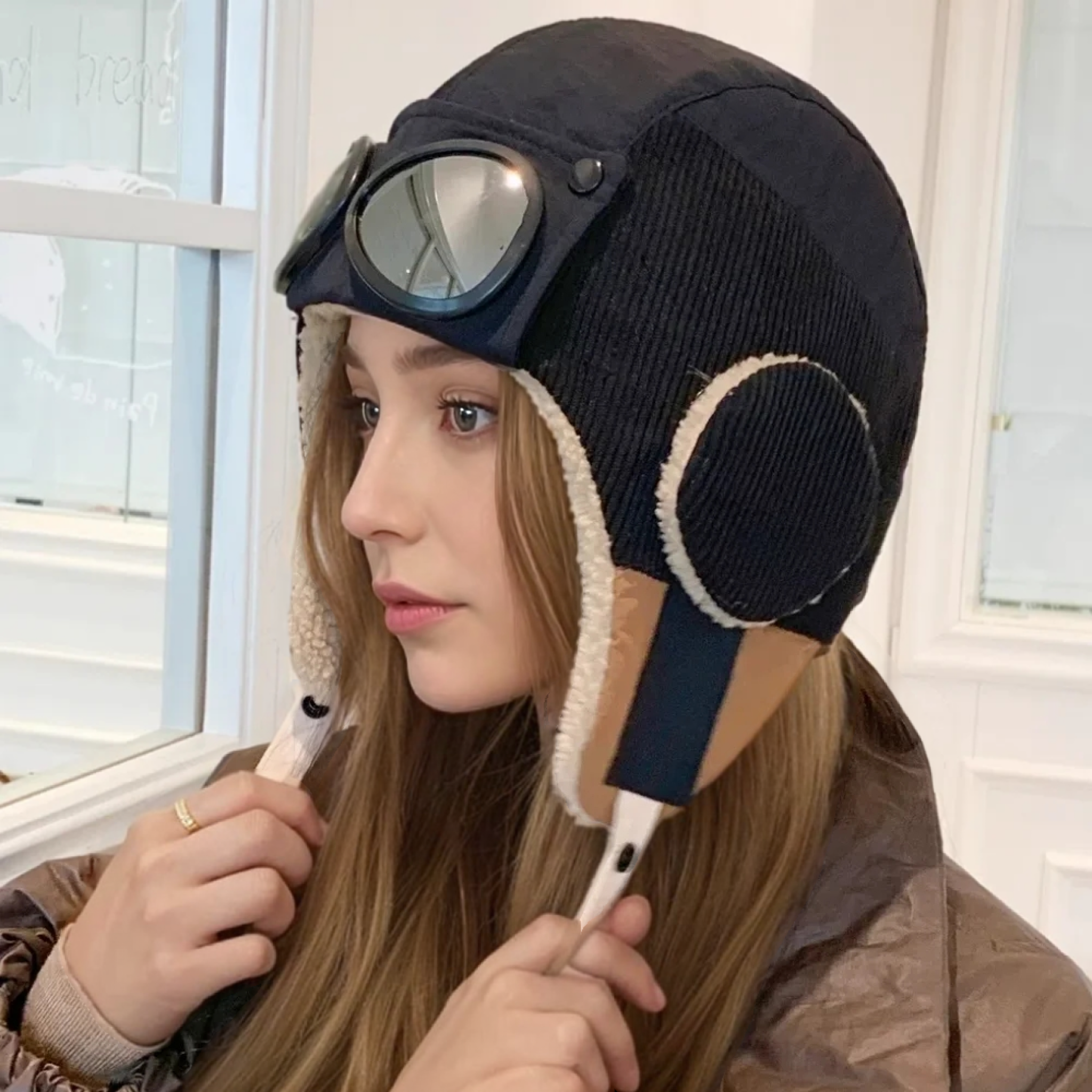 Winter Hat For Women, Warm Bomber Cap With Earflap, Plush Fur Dandy Hat With Goggles. coffee