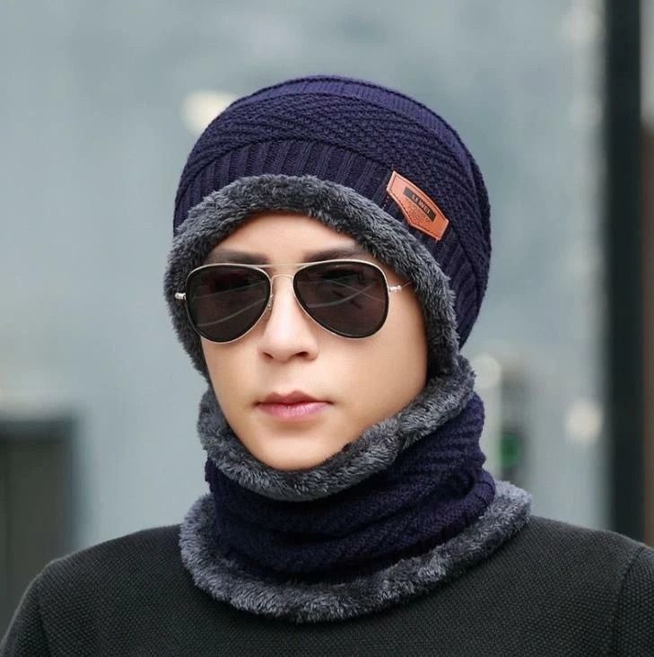 Unisex Fleece Beanie Hat & Scarf Set Arm, Slouchy Snow & Ski Cap For Winter Comfort black