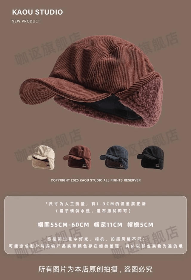 Retro Corduroy Bomber Hat Fleece Lined Winter Earflap Cap beige 22.022.8 Inches