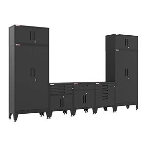 Armadillo Tough Black 7-Piece Garage Cabinet System with Levelers