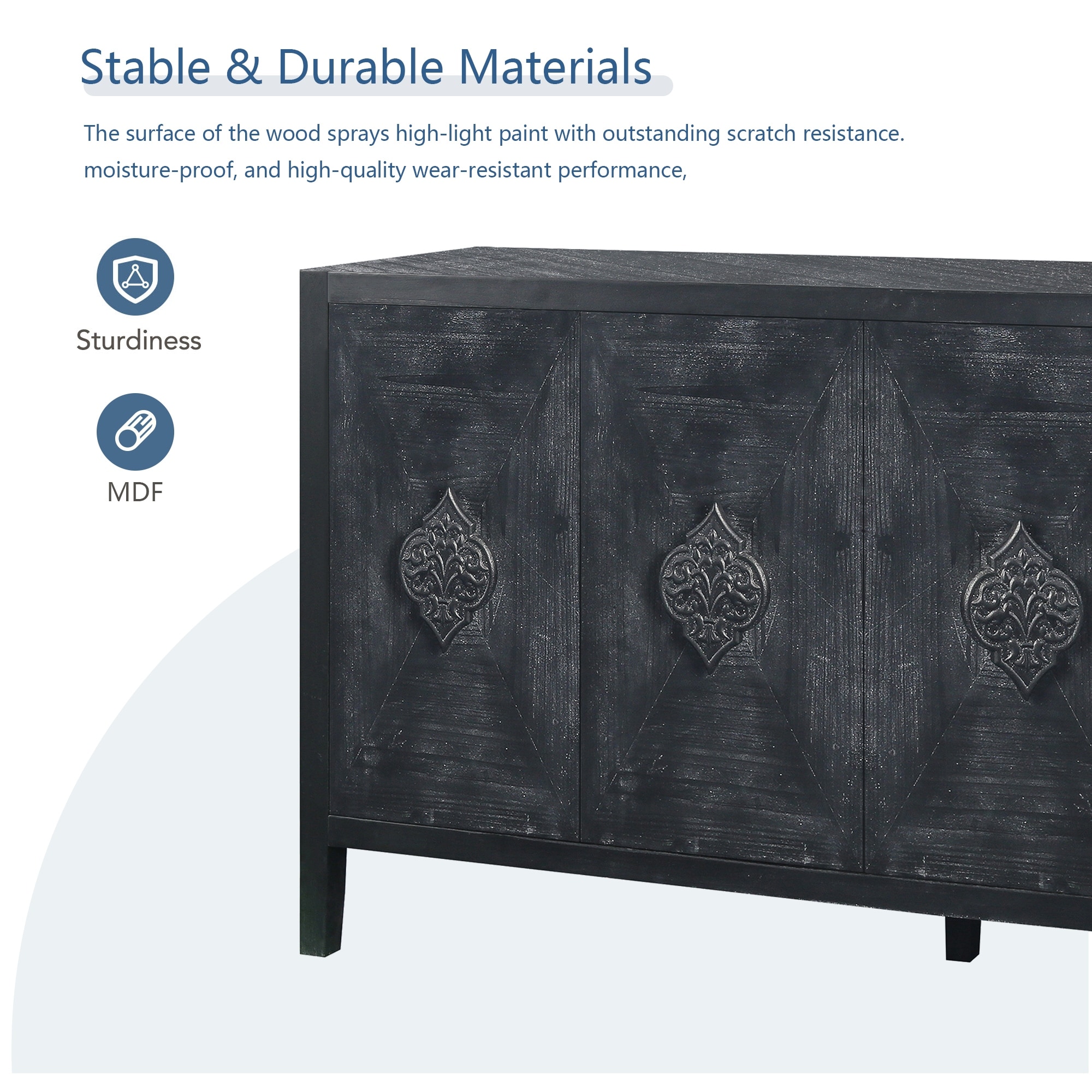Set of 8 Hand-Painted Black & White Botanical Ceramic Cabinet Knobs Traditional Round Drawer Pulls with Metal Base