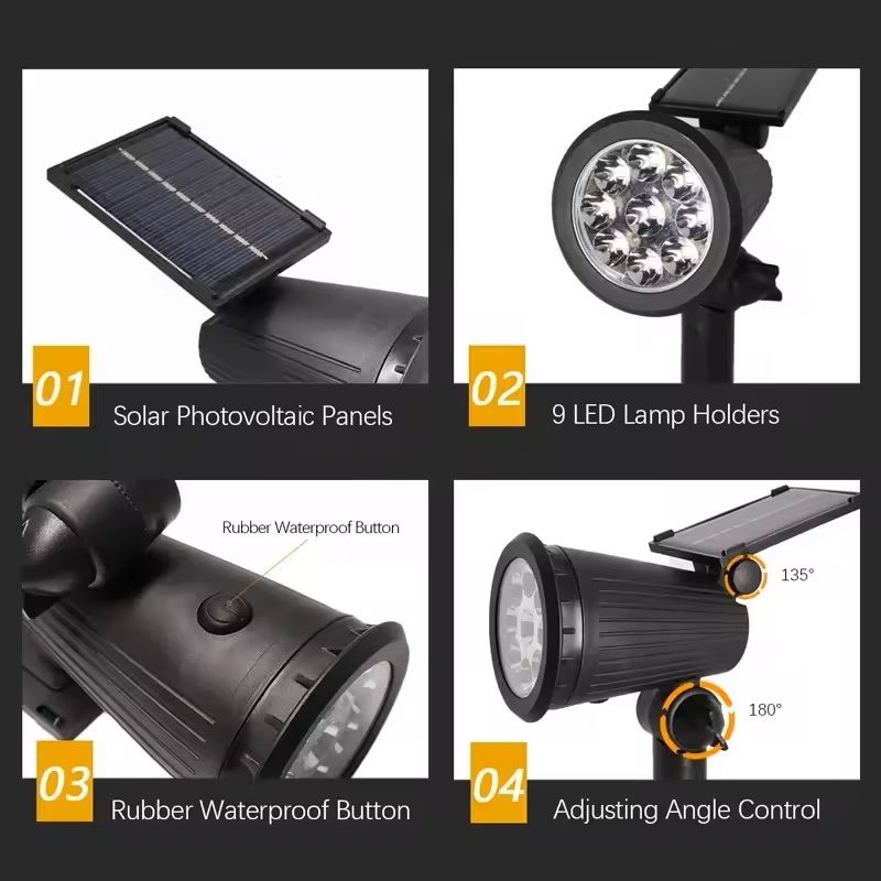 9 LED Outdoor Solar Spot Light Waterproof Landscape Garden Pathway Lighting warm Light