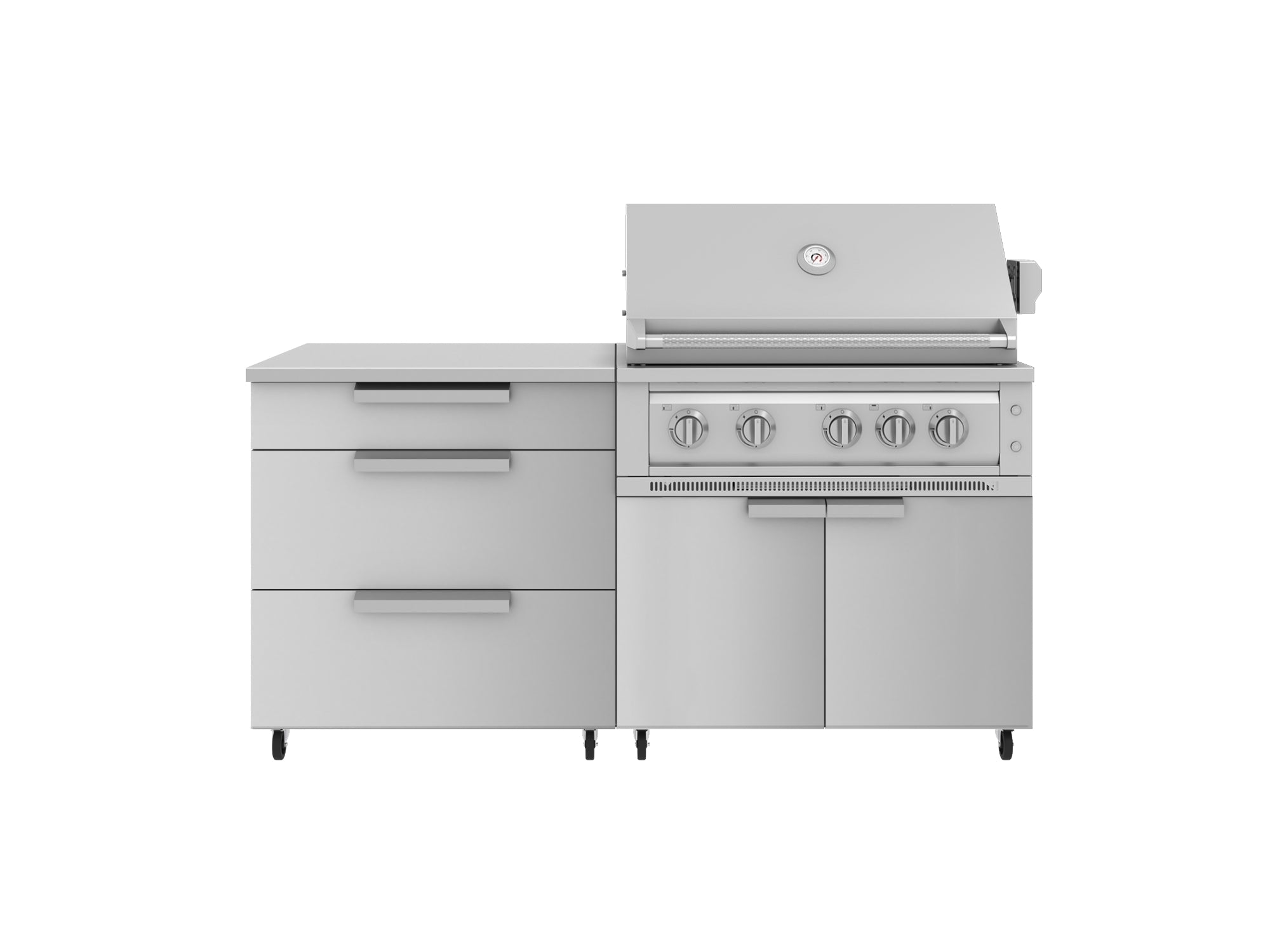 NewAge Outdoor Kitchens Stainless Steel 4-Piece Cabinet set with Casters and 3 Drawer, Grill Cabinet, Platinum Grill, Countertop