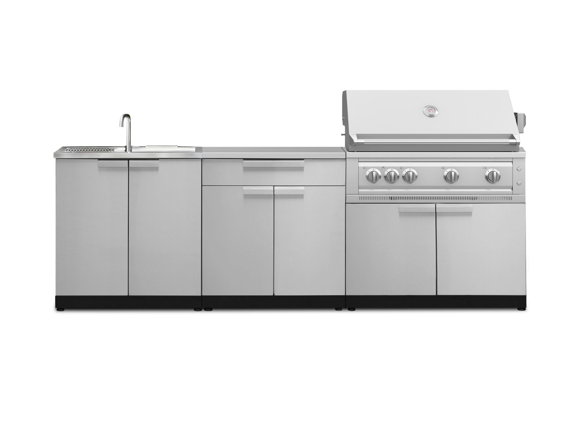 NewAge Outdoor Kitchens Stainless-Steel 5-Piece Cabinet Set with Sink, 2-Door with Drawer, Grill Cabinet, Platinum Grill and Countertop