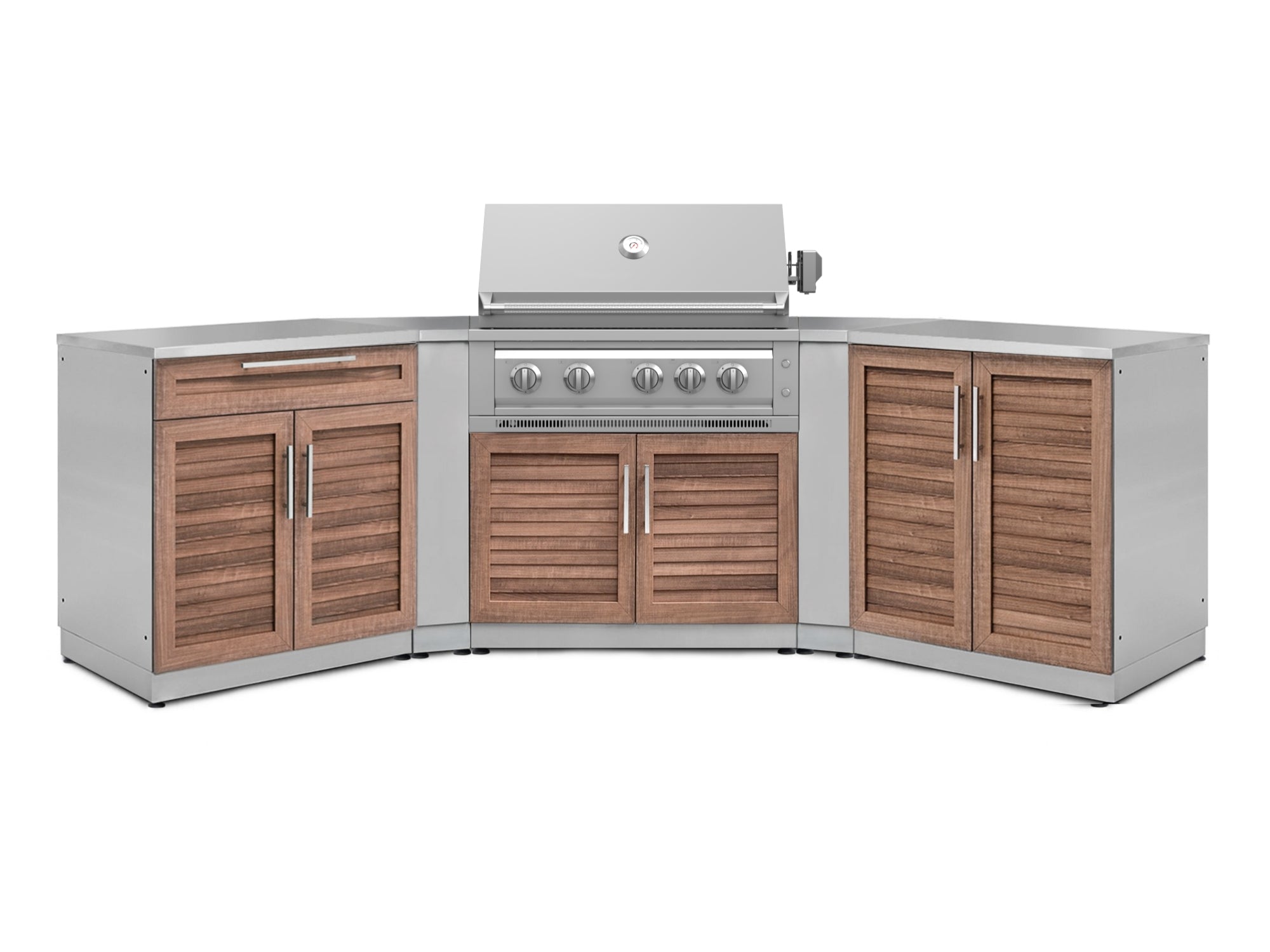NewAge Outdoor Kitchens Stainless Steel 7-Piece Cabinet Set with 2 Door, Bar, Corner, Grill Cabinet, Platinum Grill, and Countertops